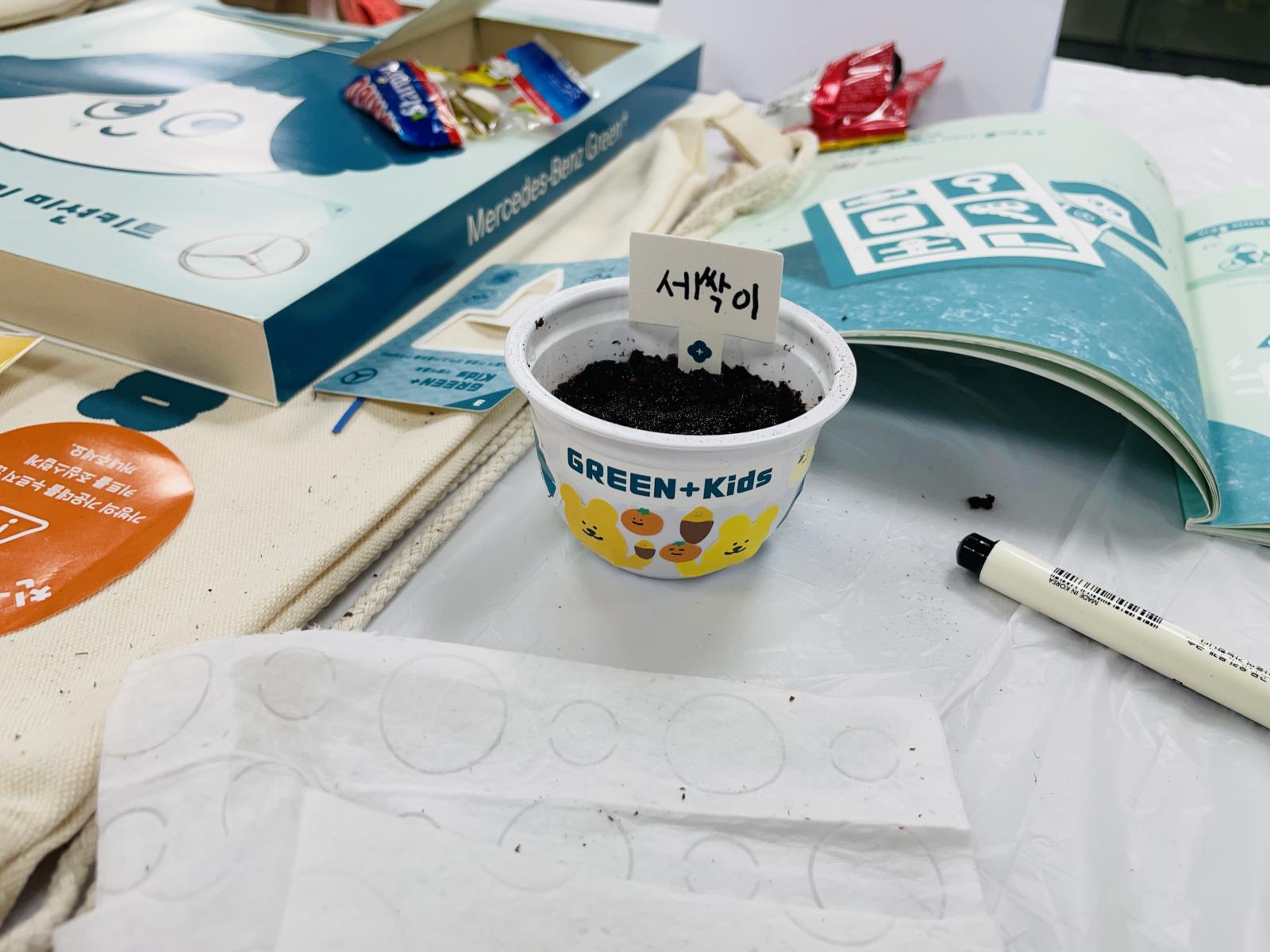 씨앗이 박혀있는 종이를 잘 심어주면 화분만들기 끝!