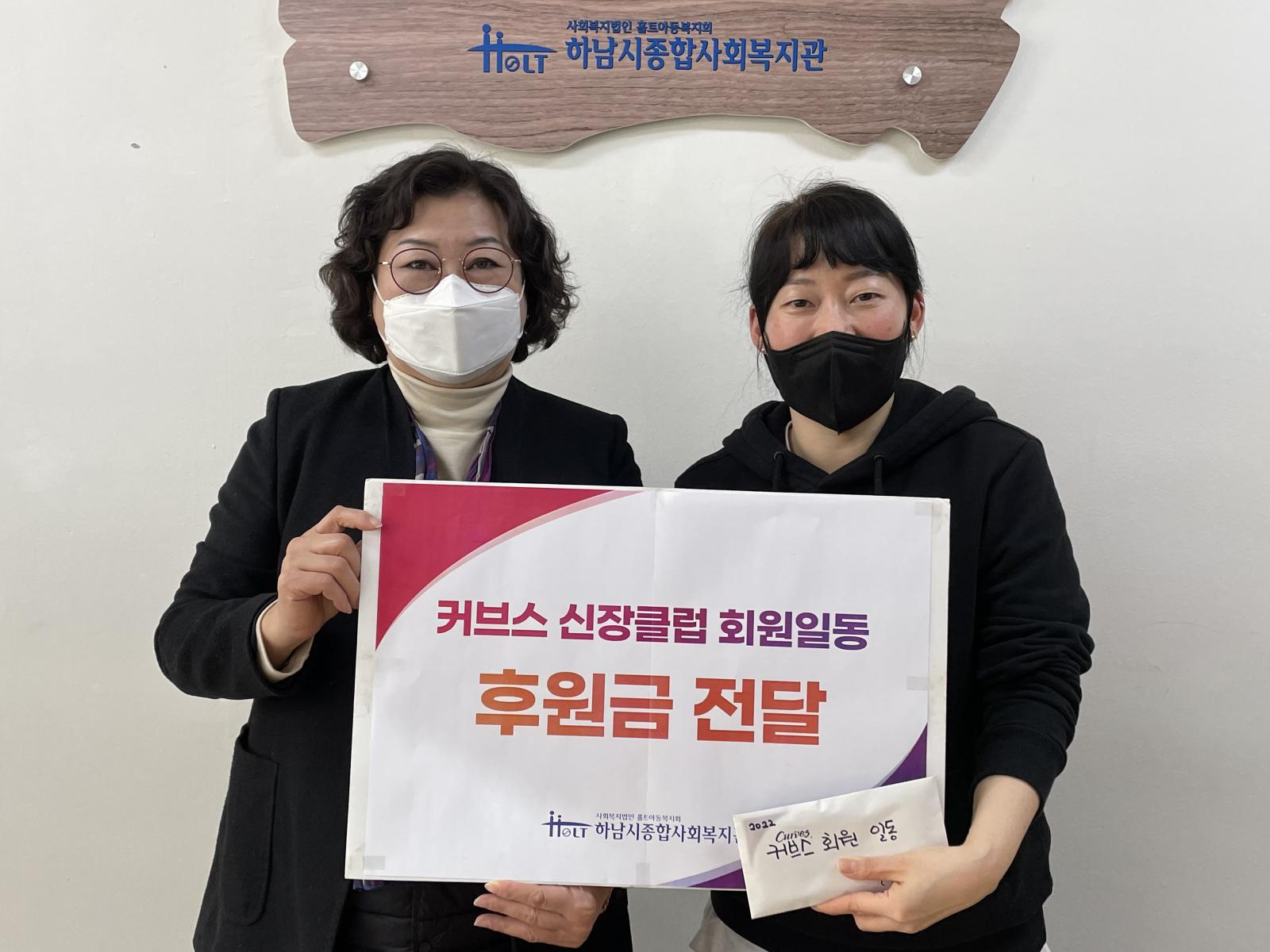 커브스 신장클럽 후원금 전달 작성일 : 2022.12.30 | 조회수 : 4997 커브스 신장클럽(대표 김선화) 회원들이 지역사회를 위해"코로나19 여파로 더욱 외롭고 힘든 시기를 보내는 우리 이웃들에게 도움이 되기를 바란다."며, 함께 모금한 후원금을 복지관에 후원해 주셨습니다.하남시 지역사회를 위해 소중히 사용하겠습니다. 감사합니다.