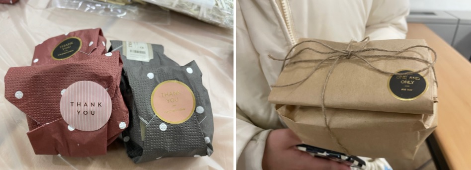 복지관에서 행사하고 남은 물품을 포장지로 활용해봤어요