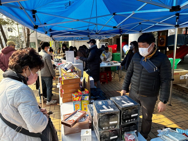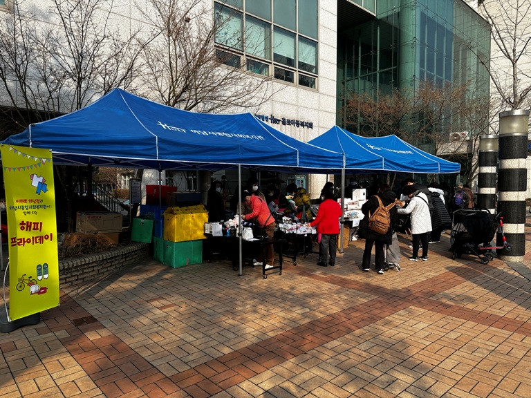 봄맞이 첫 "해피프라이데이" 진행 작성일 : 2023.02.28 | 조회수 : 5648 다가오는 봄을 맞이하여 2월 24일 금요일 복지관 놀이터 앞에서 해피프라이데이를 진행하였습니다.꽤 쌀쌀한 날씨였음에도 많은 지역주민들이 방문하여 따뜻함을 느끼는 시간이었습니다.금번 행사가 진행될 수 있도록 물품을 기증해주신 "이마트 하남점" 에 깊은 감사를 드립니다.