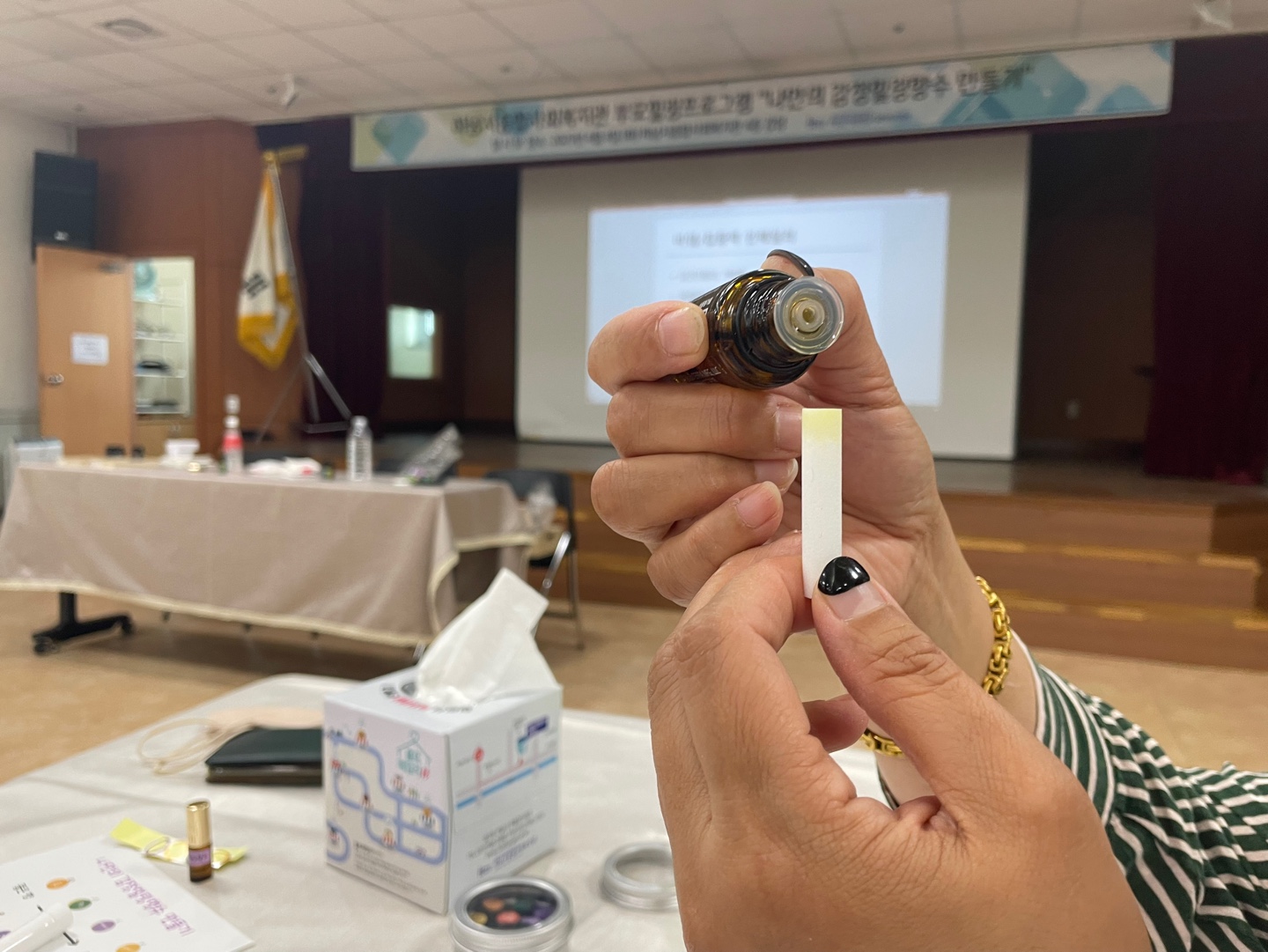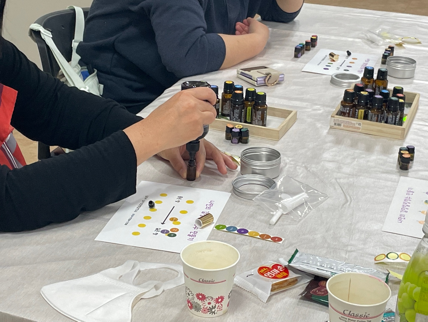 나만의 감정오일 만들기에 집중하시는 모습