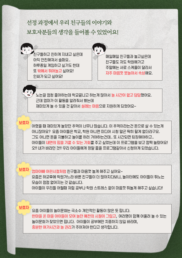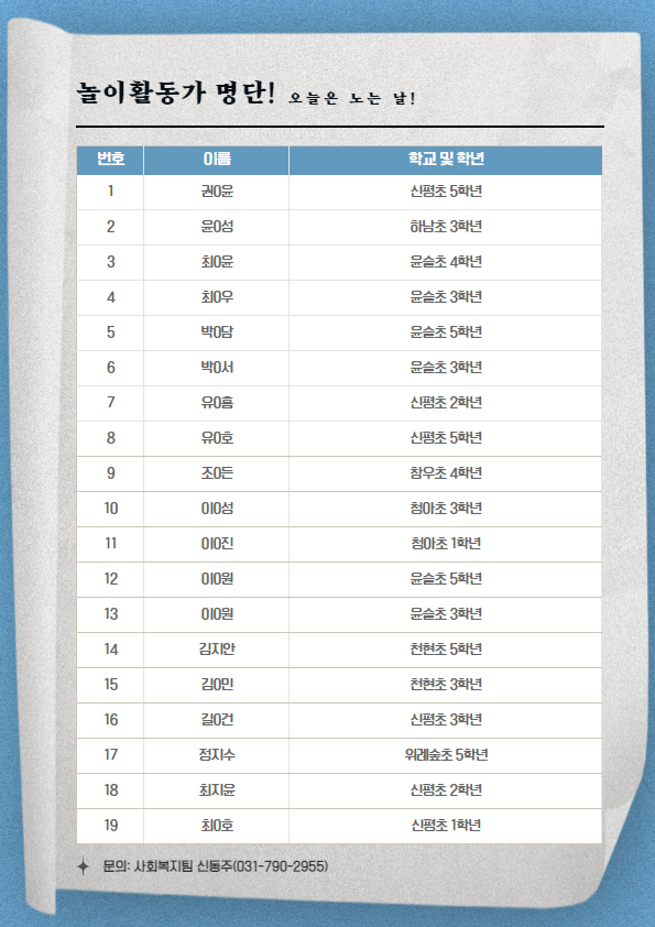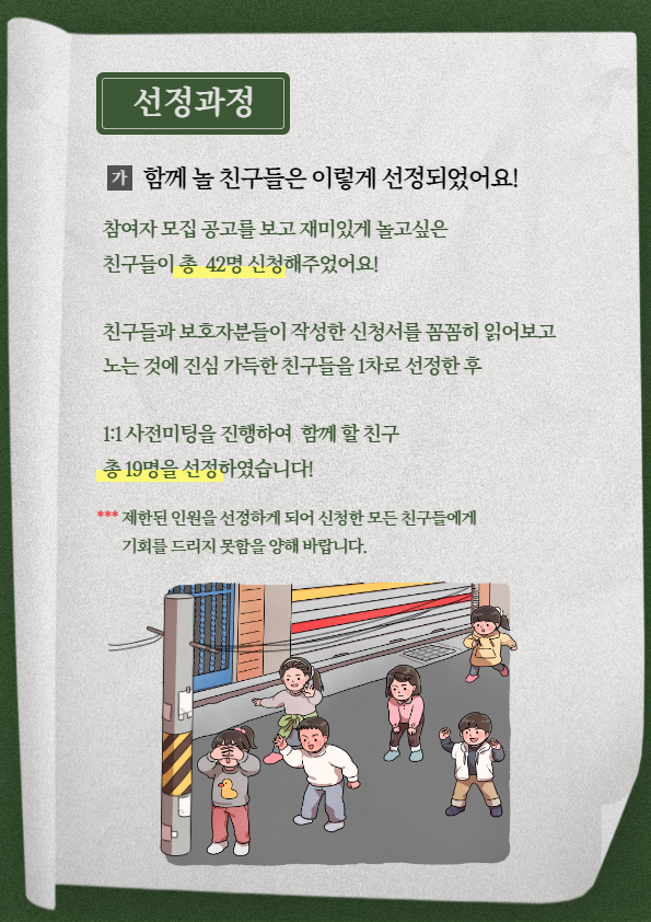 꿈꾸는아이들 꿈디자이너 비전원정대 1회기 실시 2023-04-27 조회수 5,614 2023년 4/20 장애인의 날 온라인 인식개선 캠페인 2023-04-26 조회수 4,977 2023 하남먹거리 '식사는하셨어요?' 2023-04-21 조회수 5,801 2023년 4/20 장애인의 날 현장행사 2023-04-20 조회수 5,631 2023 지역주민동아리 활동 시작! 2023-04-20 조회수 5,667 2023년 폐현수막 장바구니 1차 전달식 및 간담회 진행 2023-04-17 조회수 5,137 올바로치과의원 취약계층 치과진료 지원 2023-04-12 조회수 5,402 2023 세대통합 프로젝트 '니캉내캉' 결연식 및 OT 진행 2023-04-12 조회수 5,255 [오늘은 노는 날!] 놀이활동가 선정 2023-04-10 조회수 5,381