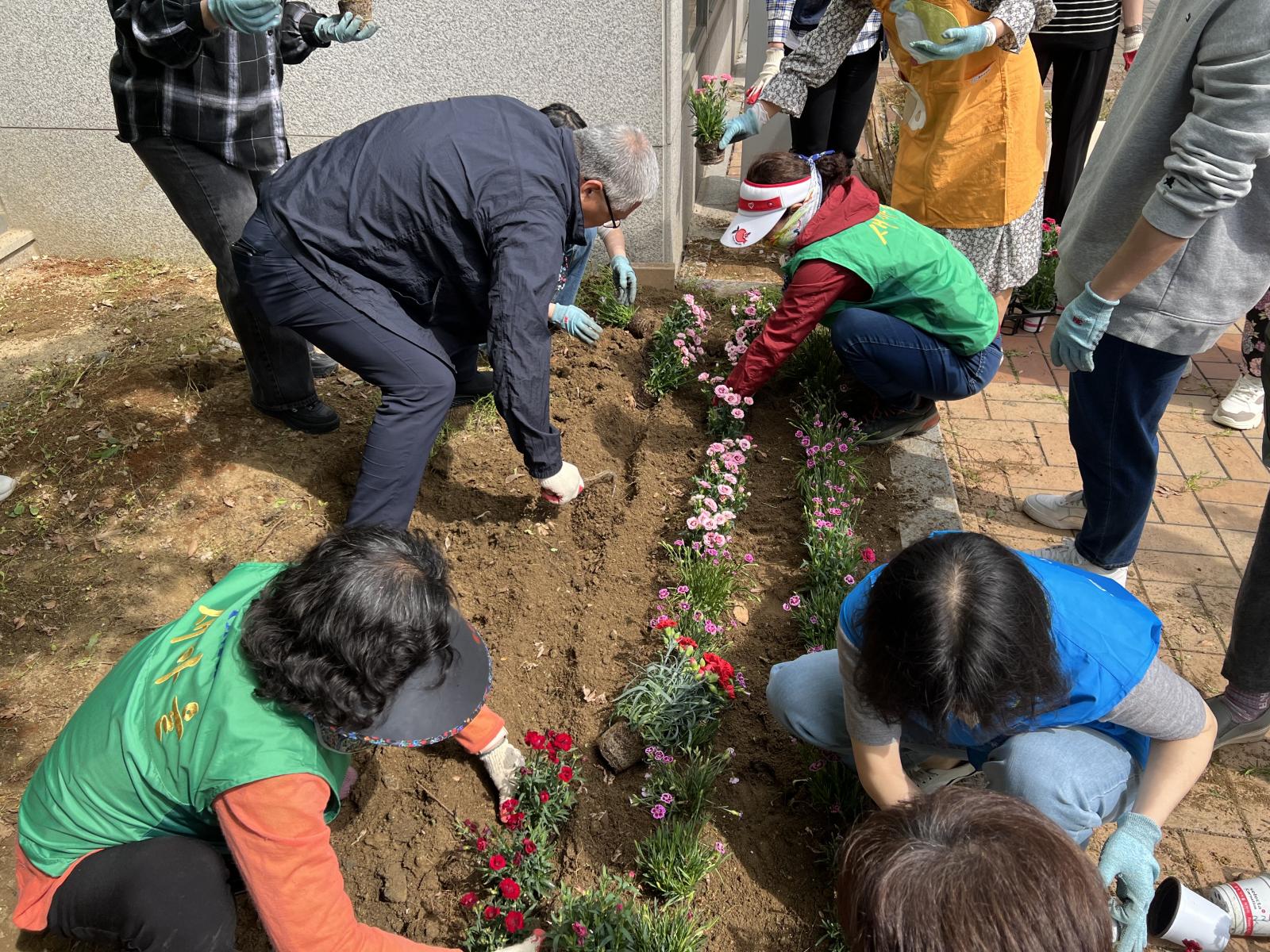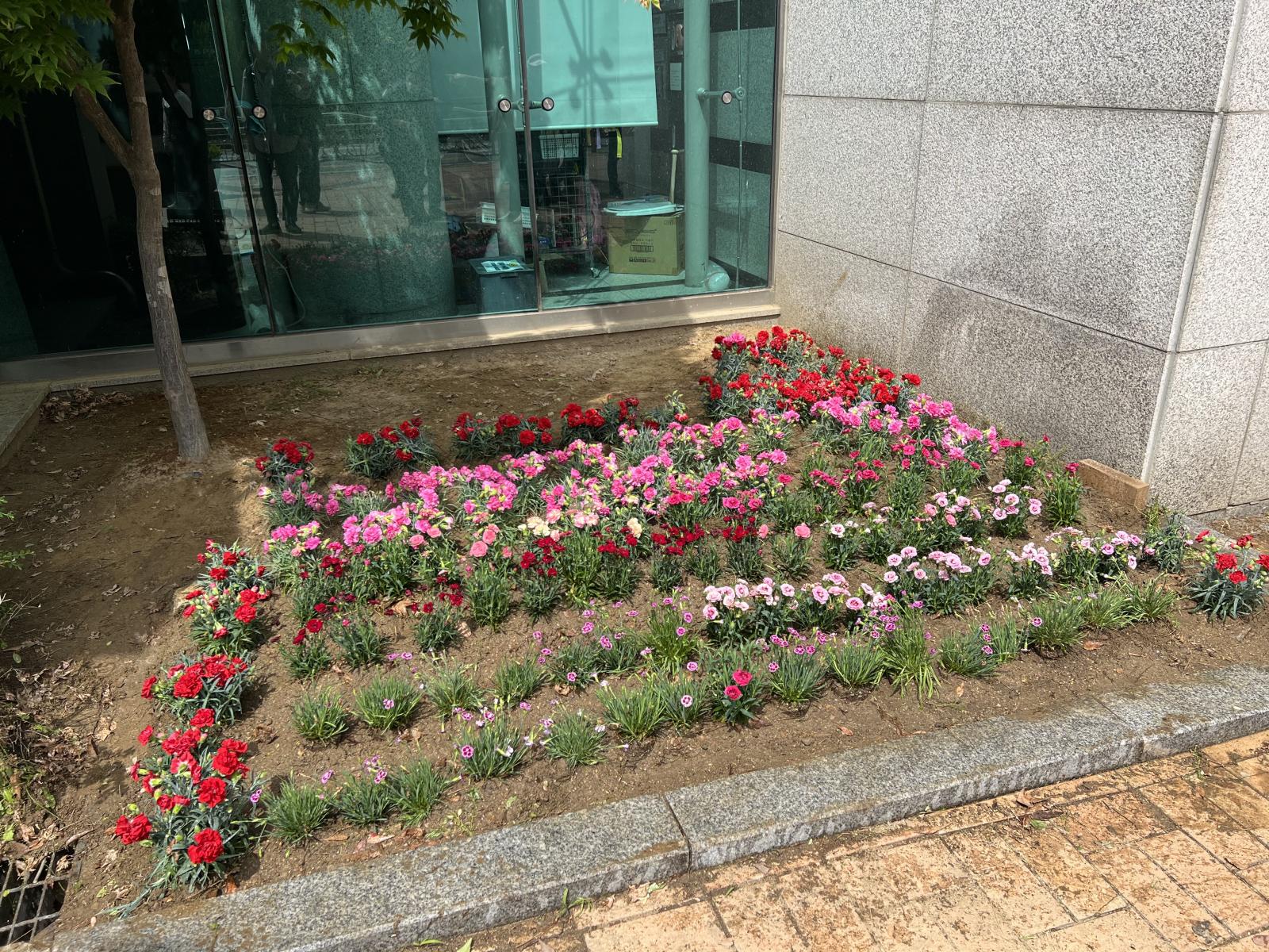 복지관 한켠에 있는 작은 화단에 예쁜 꽃을 심었어요