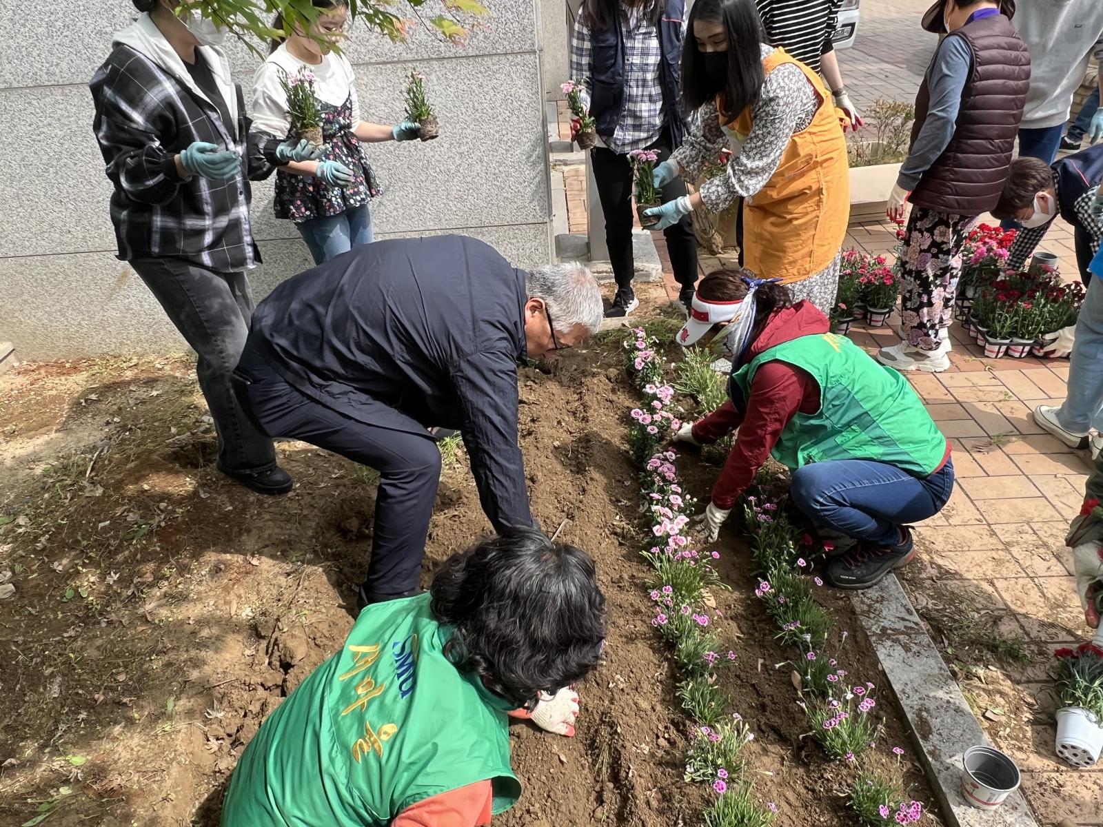 한 송이, 한 송이 정성스럽게 심어 만든 화단!