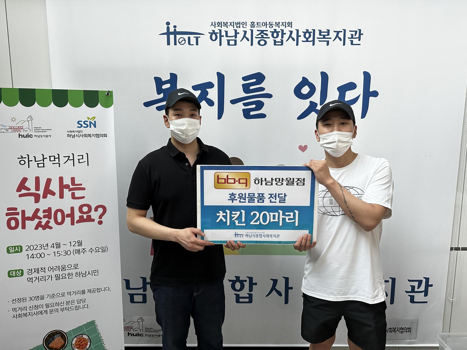 BBQ 하남망월점에서 지난 5월에 이어 다시 또 치킨 20마리(팝콘 50봉 포함)를 후원해 주셨습니다.