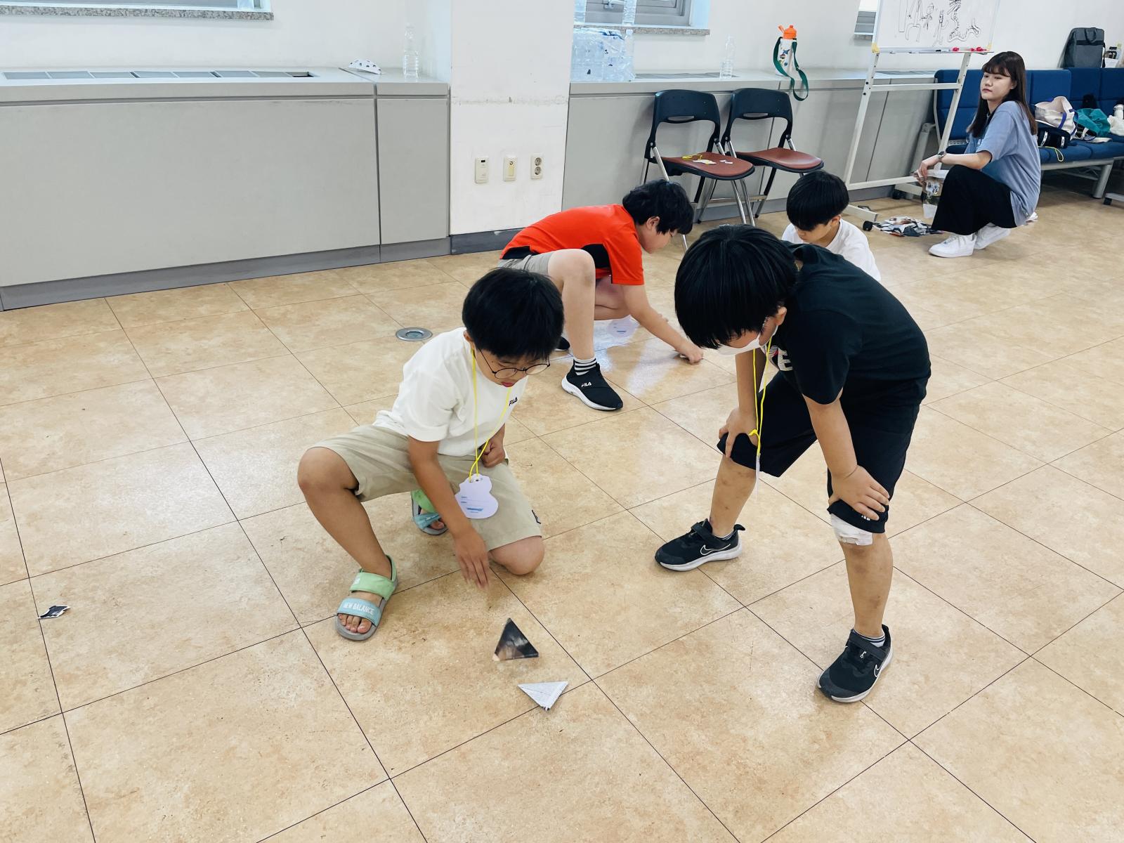팀을 두 개로 나누고, 팀별로 딱지를 한 곳에 모았어요!