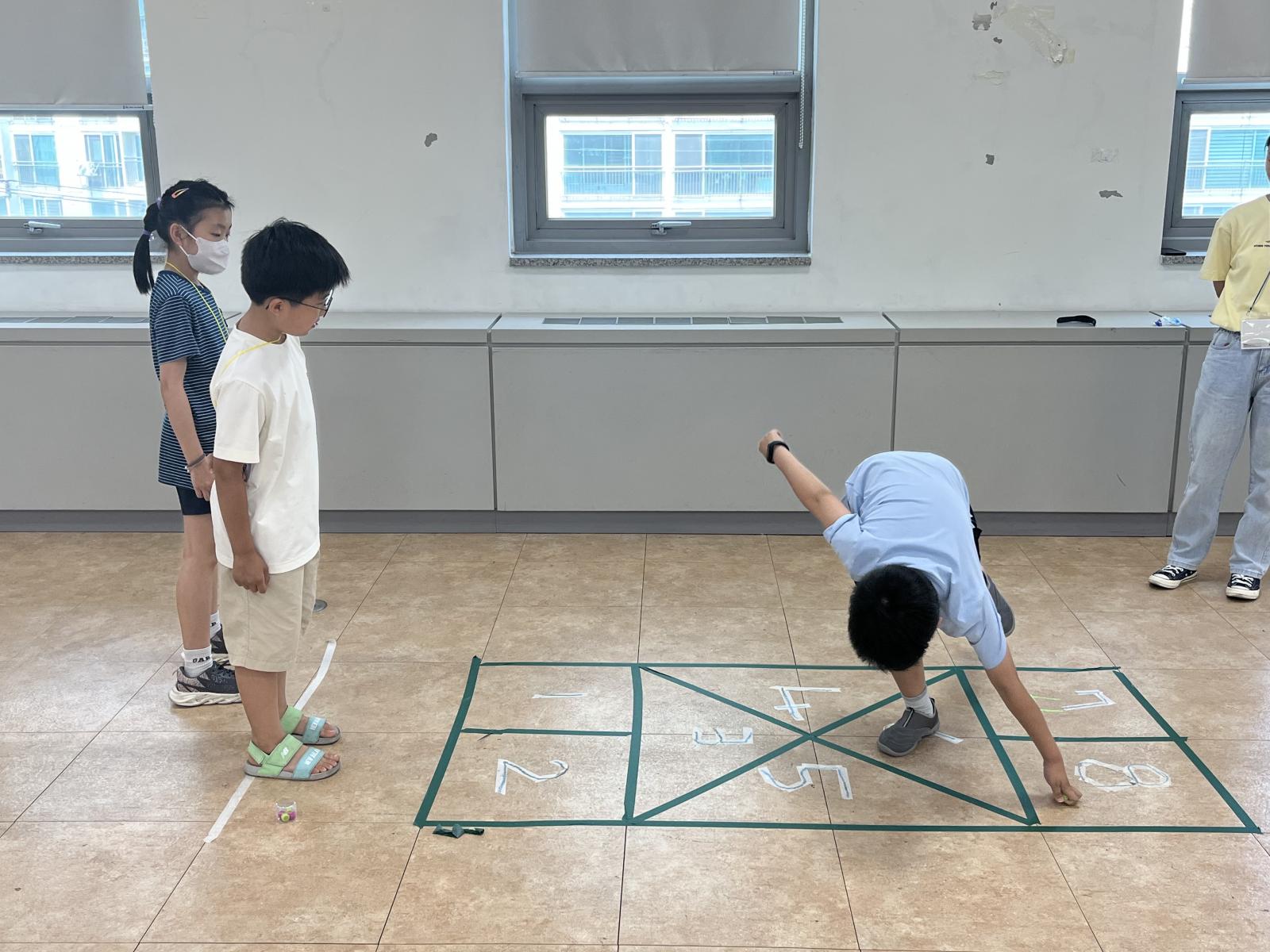 마스킹 테이프로 쭉쭉 그림을 그렸더니 땅따먹기 놀이판 완성!