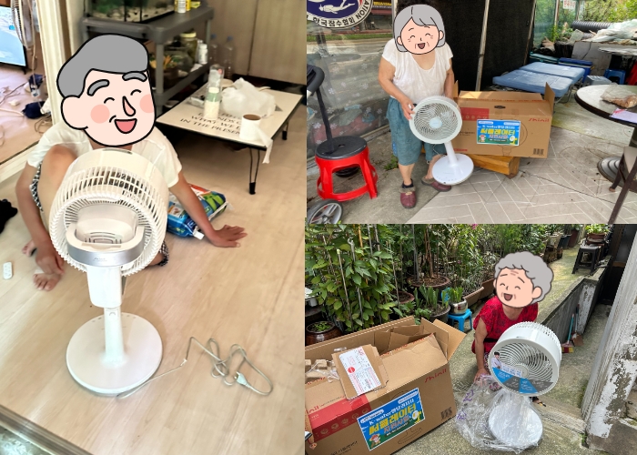 폭염에 취약한 11 가정에 방문해 냉방용품(써큘레이터) 전달해 드렸어요!