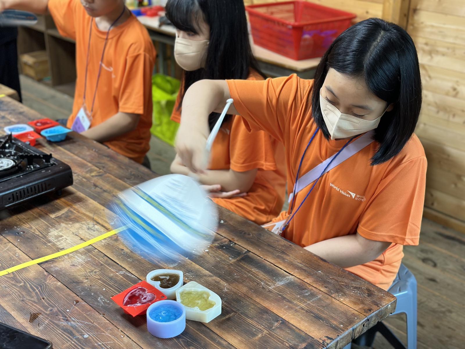 다양한 공방 체험 중, 우리 친구들은 천연비누 만들기를 선택했어요.