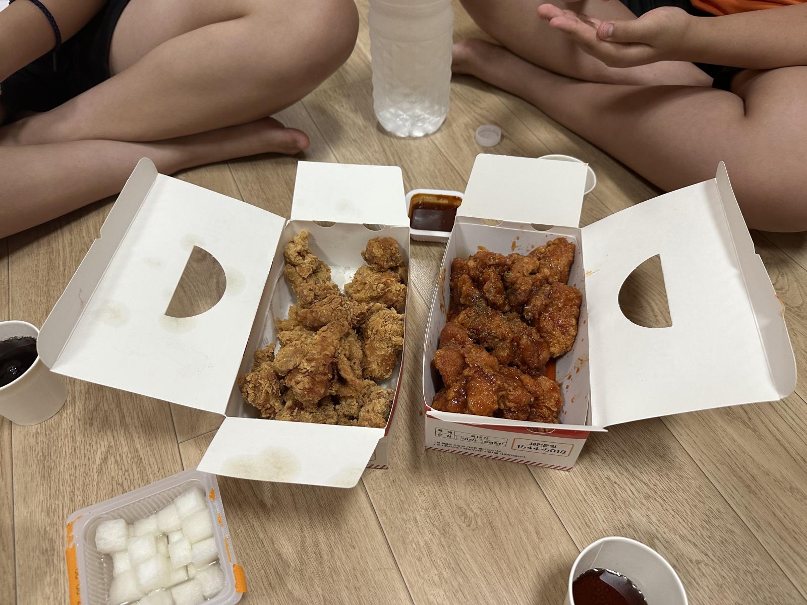 함께 치킨을 먹으며 캠프 2일차를 마무리했어요.
