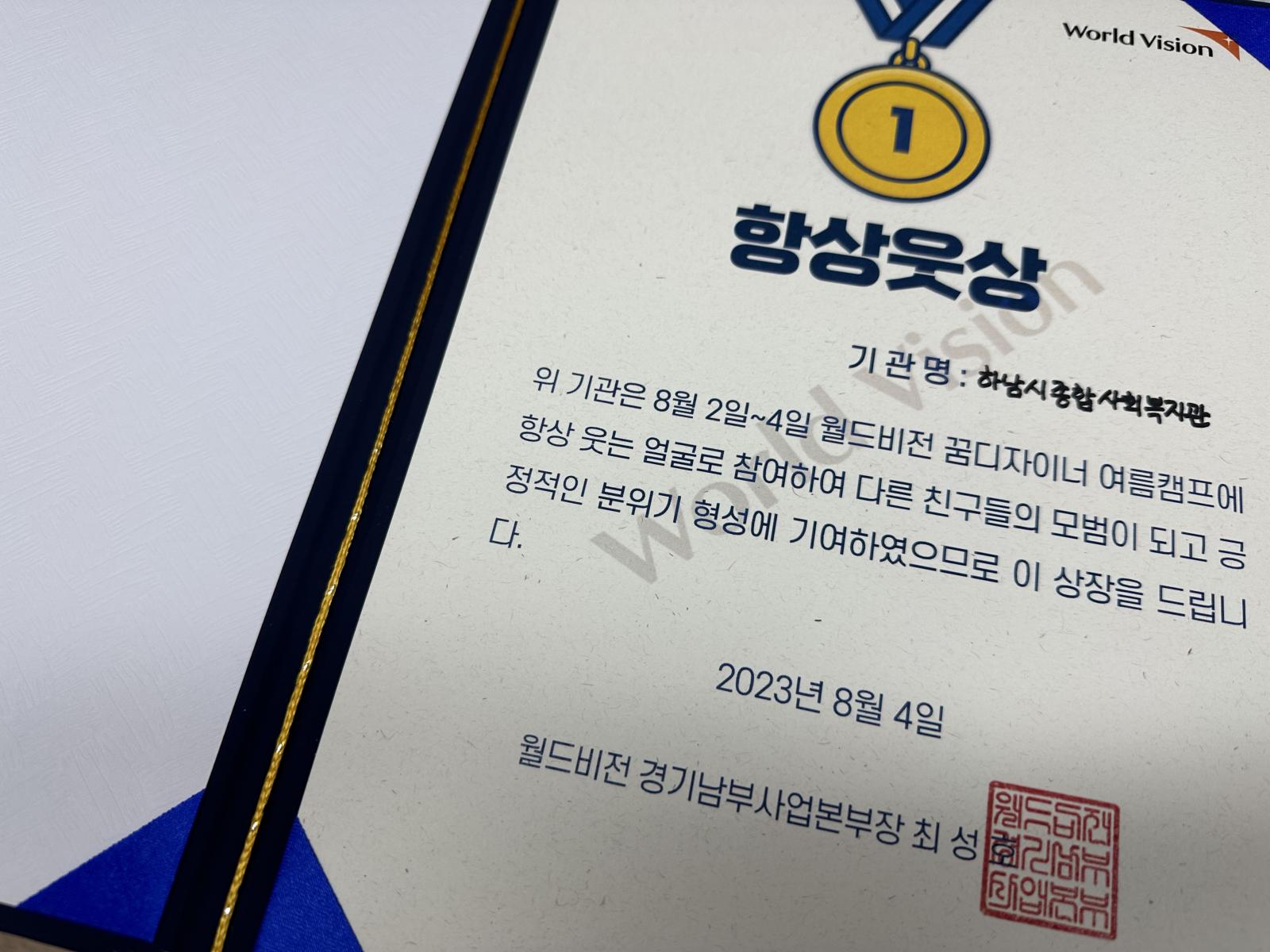 우리 하남 꿈디자이너들은 '항상웃상'을 받았답니다^_^