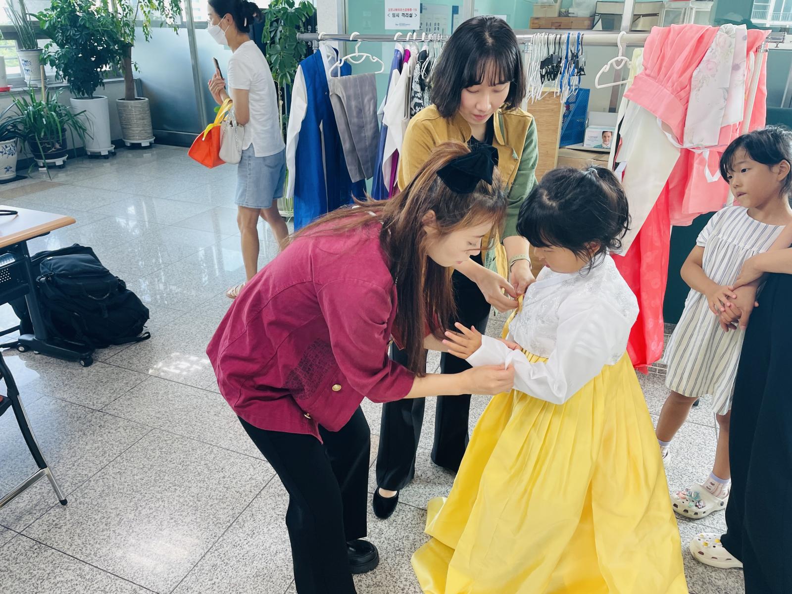 8월 마지막날! 복지관 4층 로비에 한복을 곱게 차려입은 아이들이 가득했어요!