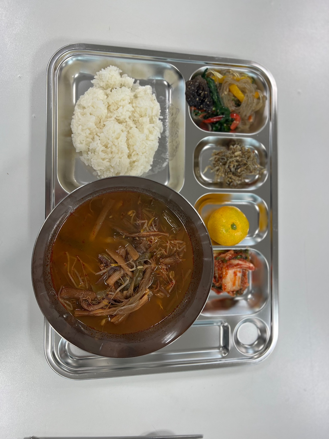 육개장, 잡채, 겉절이 등등 든든한 한 끼가 완성되었습니다.