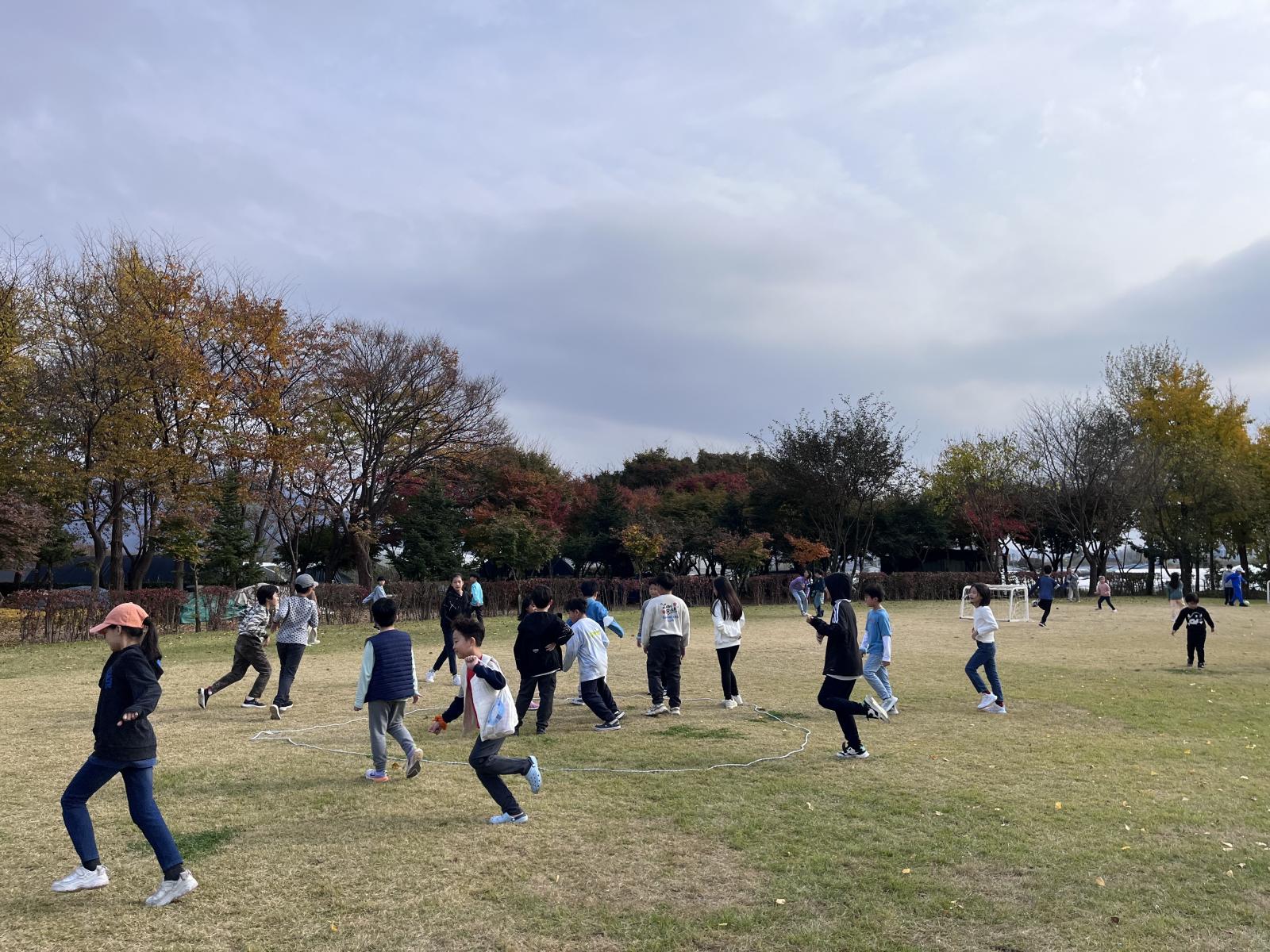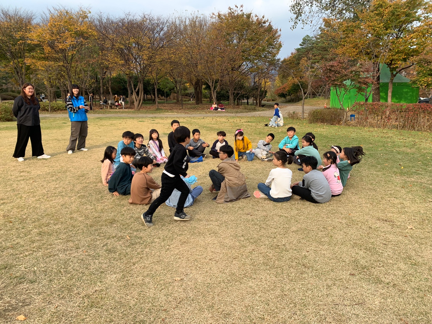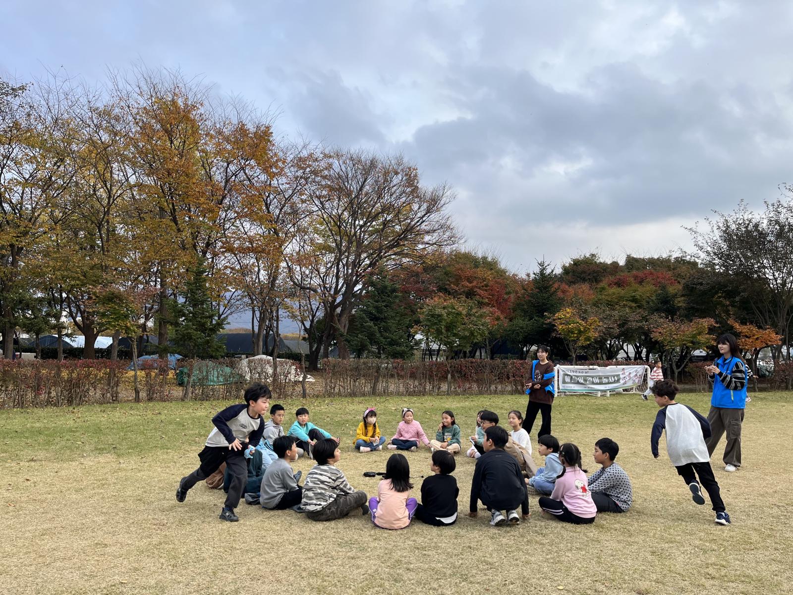 고학년 팀과 저학년 팀으로 나누어서 수건돌리기 시작!