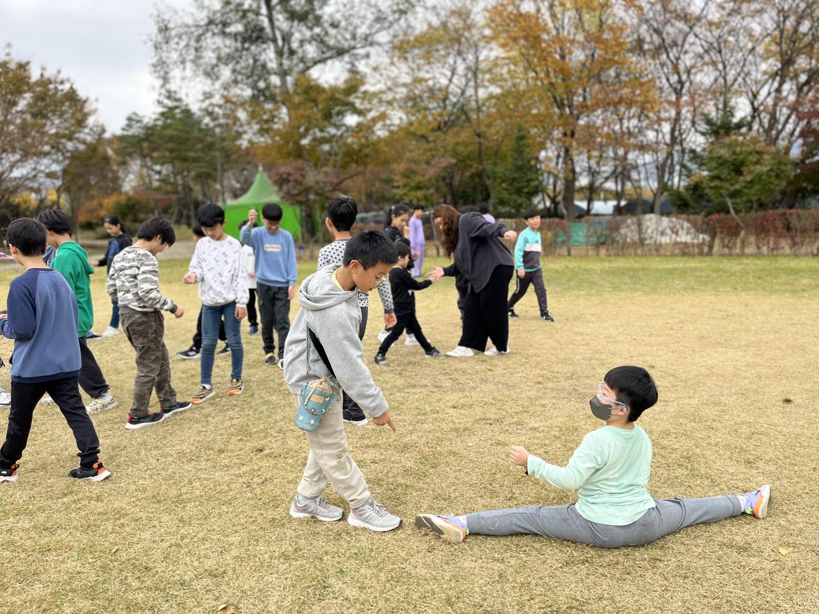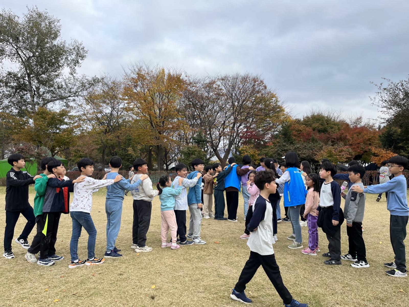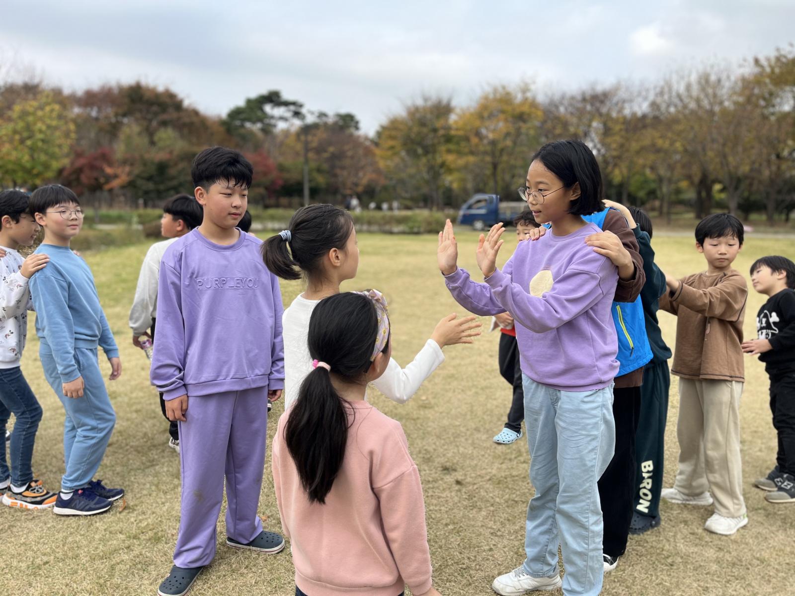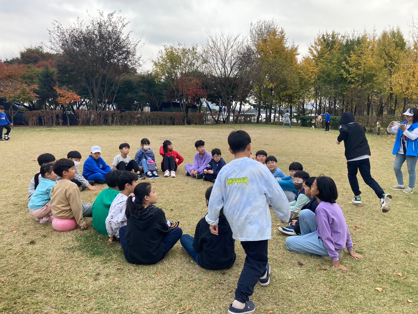 고학년 팀과 저학년 팀으로 나누어서 수건돌리기 시작!