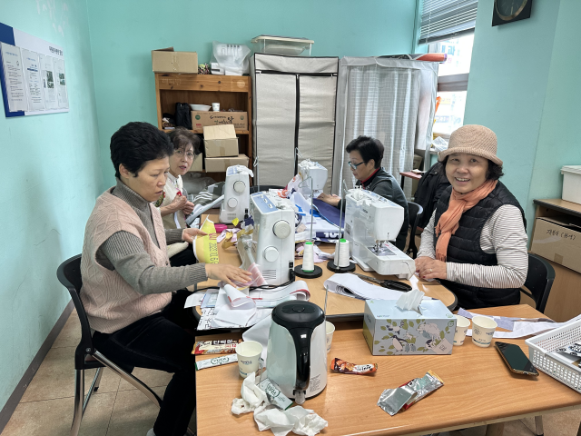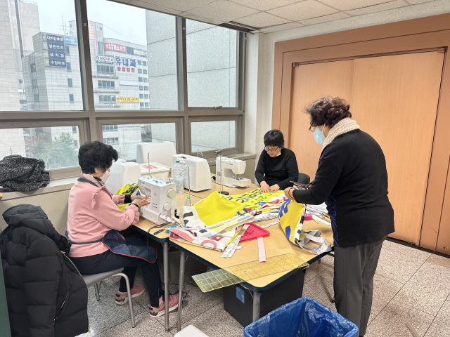 폐현수막 새활용 프로젝트 '보따리 봉사단' 11월 4주차 활동 작성일 : 2023.11.29 | 조회수 : 3602 안녕하세요~ 하남시종합사회복지관입니다.벌써 11월의 마지막인 4주차 보따리 활동입니다.이번주에는 건강상 못오시던 자원봉사자님이참석하셔서 더욱 뜻깊은 시간이었는데요!그래서 4층의 다양한 잘소를 활용하여 진행해 보았습니다!점점 추워지는 날씨 속에서도 한결같이 함께해주셔서 감사합니다.보따리 활동을 원하시는 분은 언제든지 복지관으로 연락주세요!