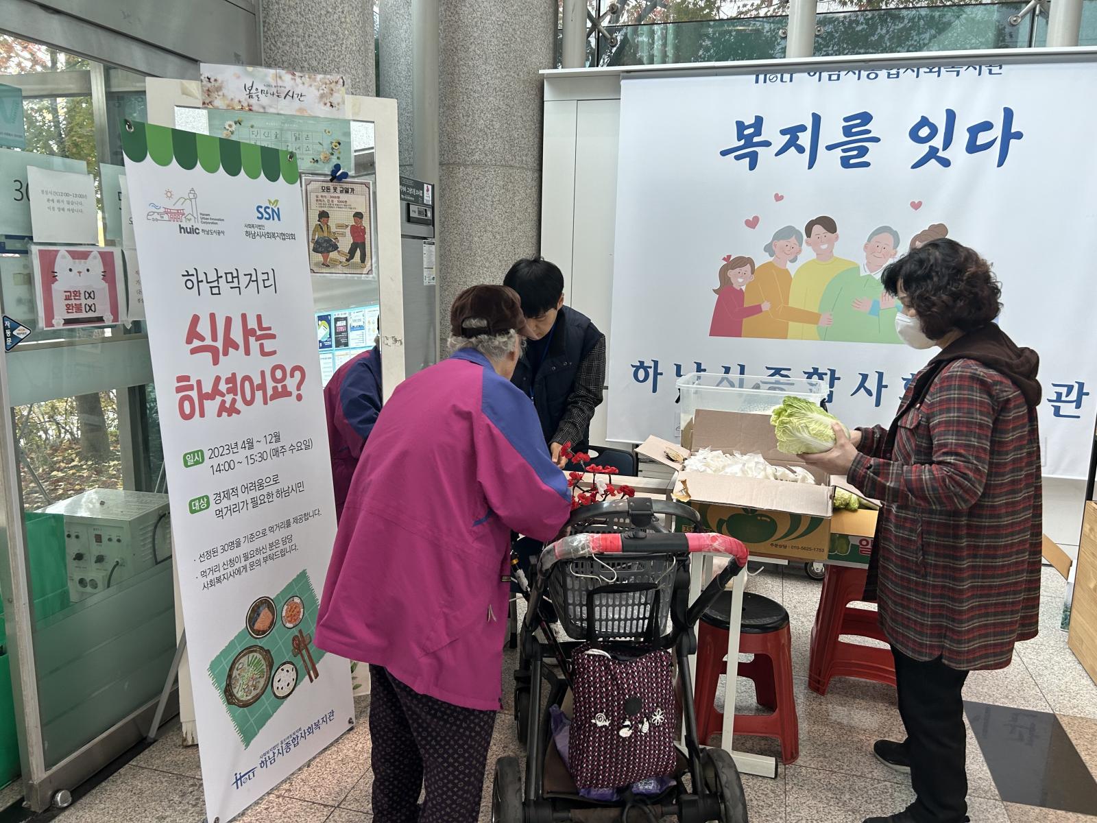 2023 하남먹거리 '식사는 하셨어요?' 22회기 작성일 : 2023.11.02 | 조회수 : 3094 안녕하세요.하남시종합사회복지관 입니다.11월 1째주 하남먹거리 진행했습니다. 하남시종합사회복지관은 매주 수요일 먹거리 대상자로 선정 된 30명에게 먹거리를 제공하고 있습니다.날이 많이 추워졌는데 맛있는 먹거리 드시고따듯한 가을 보내시기를 바랍니다!!