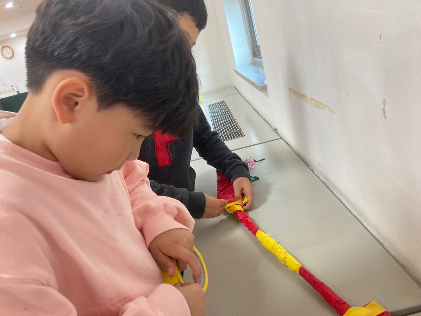 무기만들기가 재밌는 친구는 테이프로 무기 만들기를!