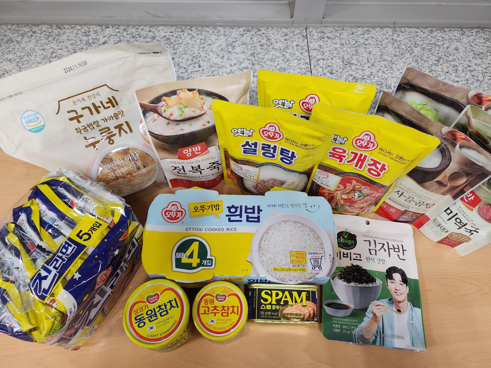 후원금으로 밥과 국, 반찬 등 여러 종류의 식품을 구입했습니다.