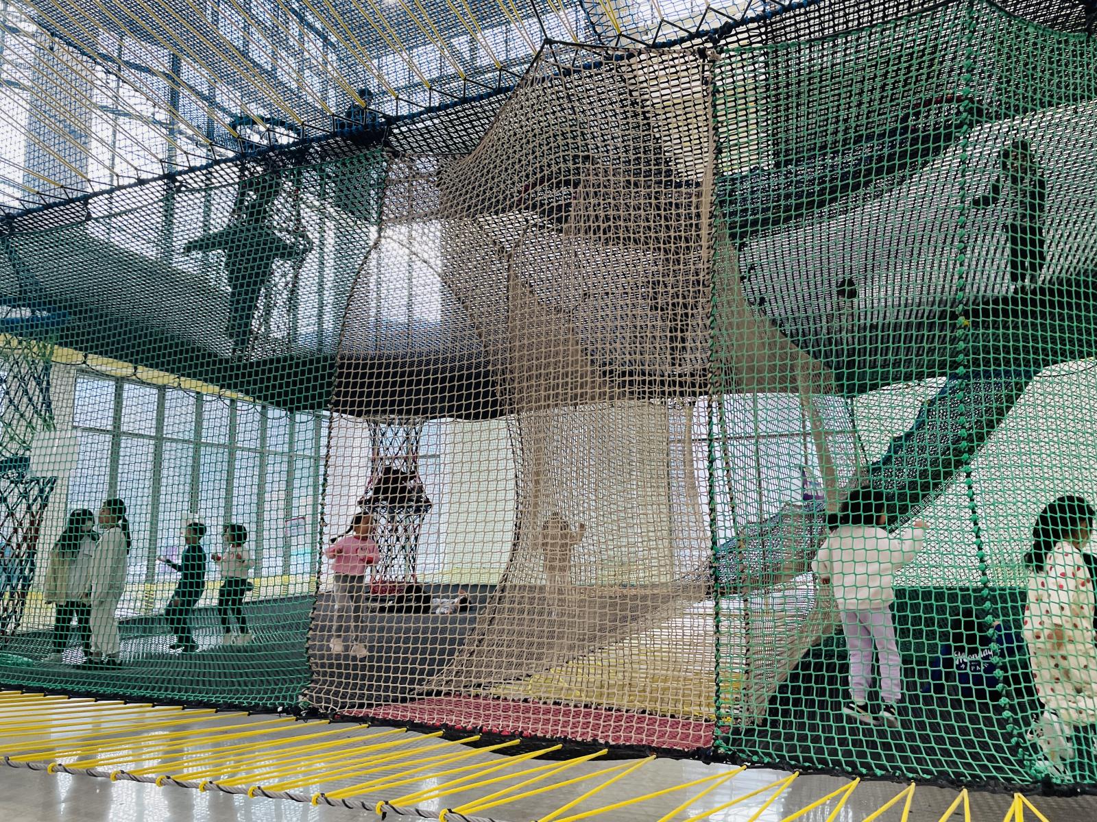 형형색색 정말 멋진 체험존에 가장 꼭대기까지 올라간 용감한 친구들이 보여요!