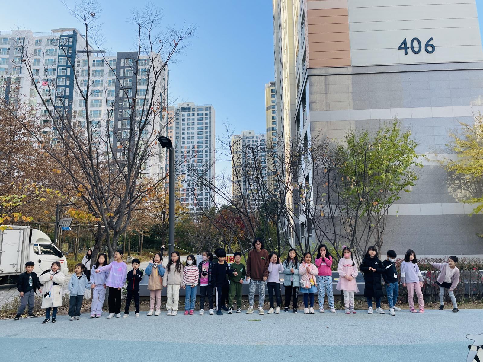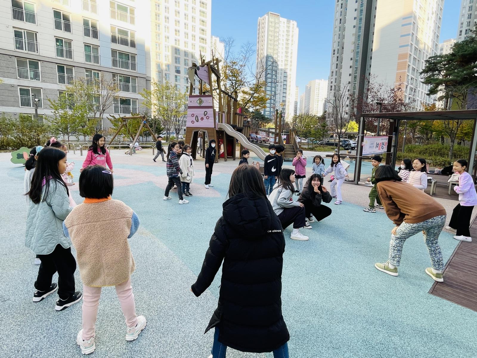 처음엔 아이들이 노래를 몰라서 따라하느라 바빴지만