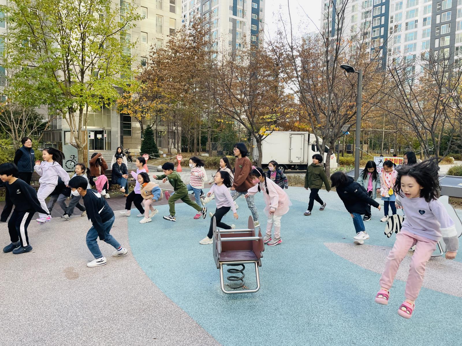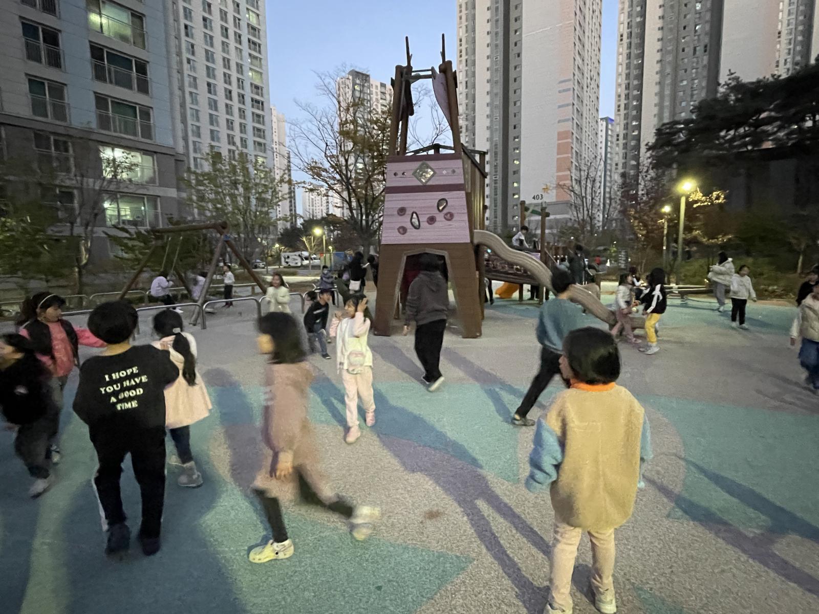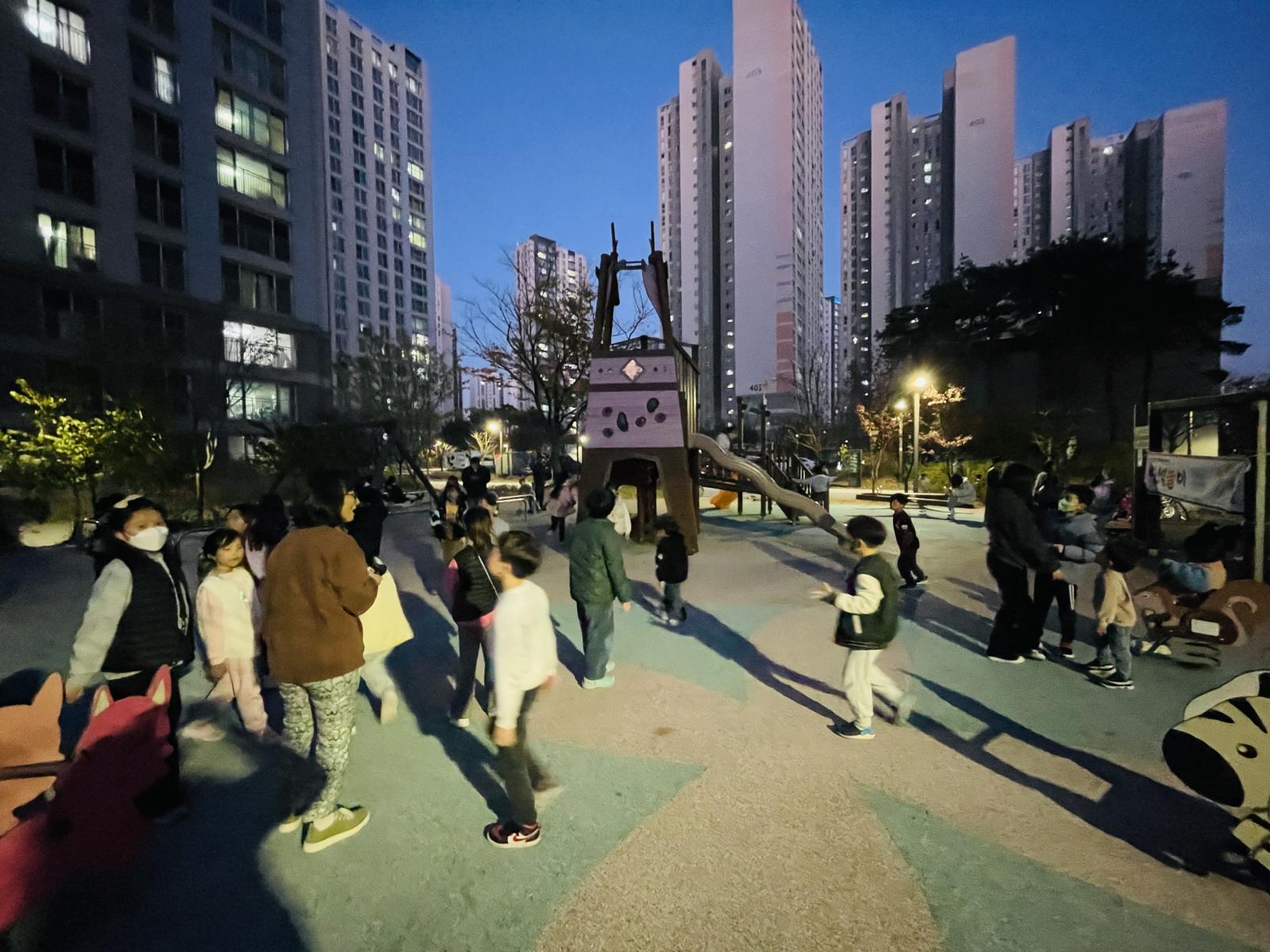 겨울이라 해가 빨리 져서 아쉽지만 그래도 가로등 불빛 아래에서 많은 아이들이