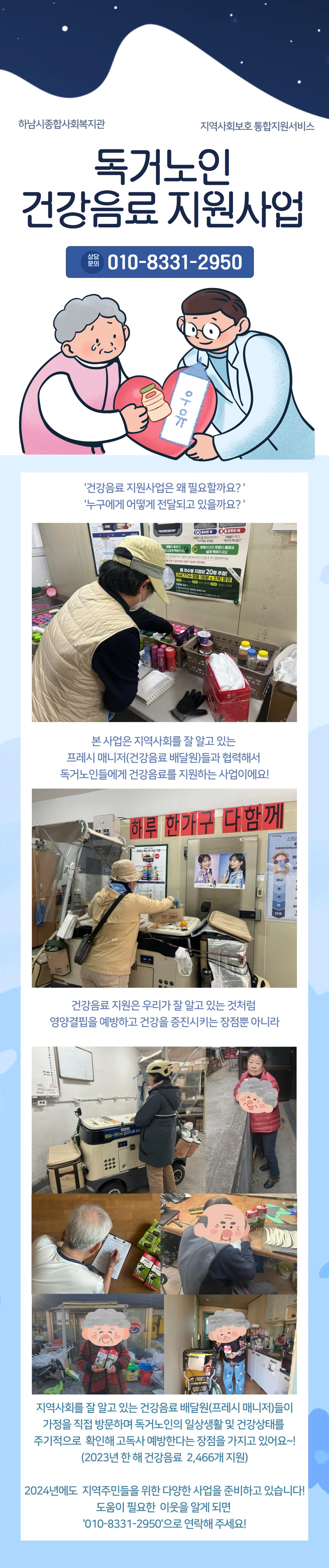 우리동네 신문배달(중부일보) 2023-12-29 조회수 3,273 2023 지역주민동아리 최종 평가 2023-12-29 조회수 4,032 2023 독거노인 건강음료 지원사업 2023-12-29 조회수 4,853 2023년 재가노인 식사배달 진행 및 만족도 조사 2023-12-29 조회수 4,395 2023 지호한방삼계탕 백미지원 2023-12-29 조회수 4,441 손사랑 나눔 봉사단 12월 넷째 주 활동 2023-12-28 조회수 3,803 한국철도공사 덕소시설사업소 저소득가정 이사지원 2023-12-28 조회수 4,355 폐현수막 새활용 프로젝트 '보따리 봉사단' 12월 4주차 활동 2023-12-27 조회수 4,173 2023년 도담도담멘토링 최종평가회 2023-12-27 조회수 3,997