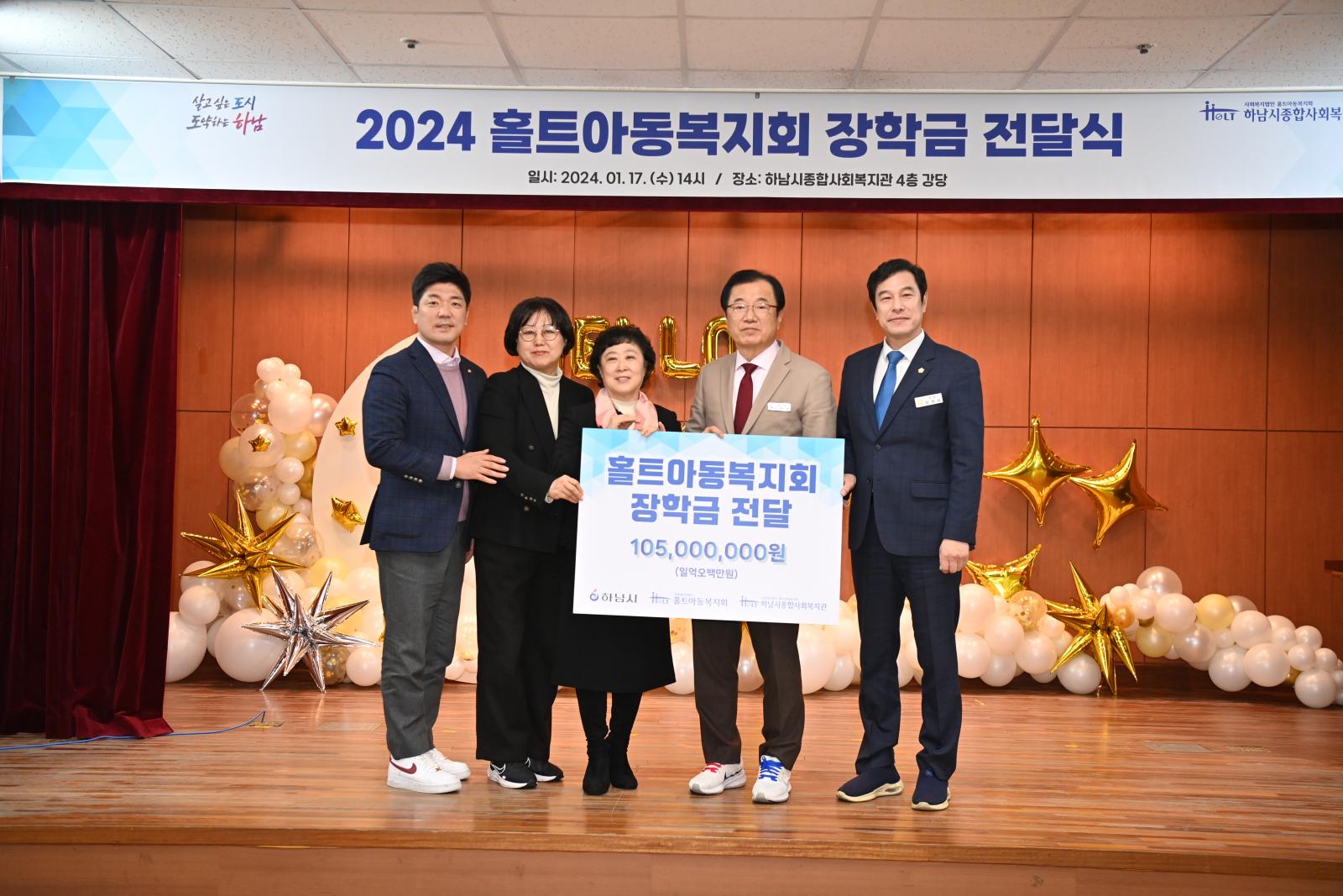 신미숙 홀트아동복지회 회장이 참석하여 약 1억 5백만원의 장학금을 전달해주셨습니다.