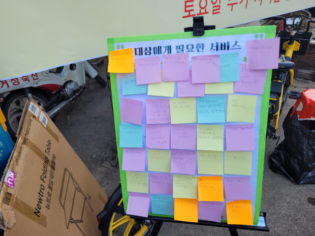 '복지가 필요한 대상에게 어떤 서비스가 제공되어야 할까요?'라는 질문으로 포스트잇을 활용한 설문조사도 진행됐습니다.