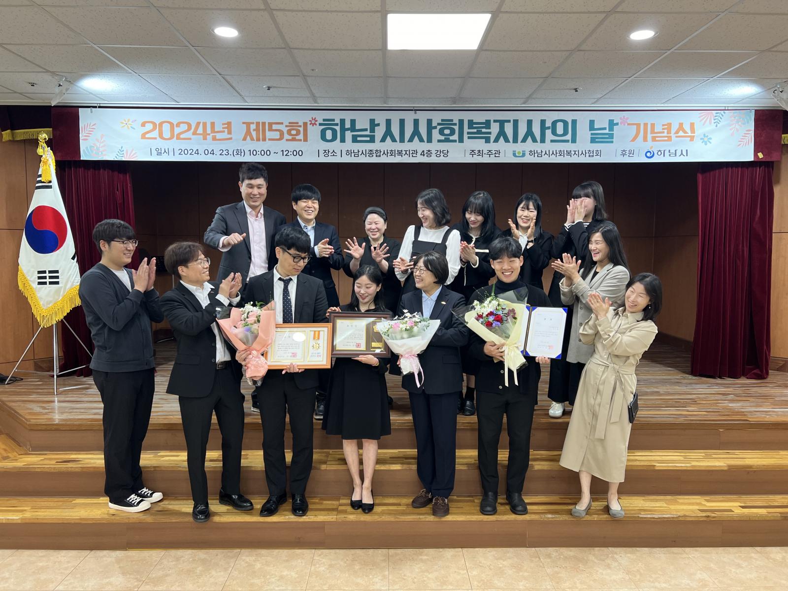 하남시 사회복지사의날, 수상을 축하드립니다! 작성일 : 2024.04.23 | 조회수 : 3634 24년 4월 23일(화)에 열린 하남시 사회복지사의날 기념식에서우리 복지관의 ▲우지훈 대리(하남시장표창),▲신소희 사회복지사(하남시의회 의장표창), ▲유경철 사회복지사(사회복지사 사진공모전 우수상)가 상을 수상했습니다!하남시와 지역주민을 위해 부단히 노력하는우리 직원들을 함께 격려해주세요!감사합니다.