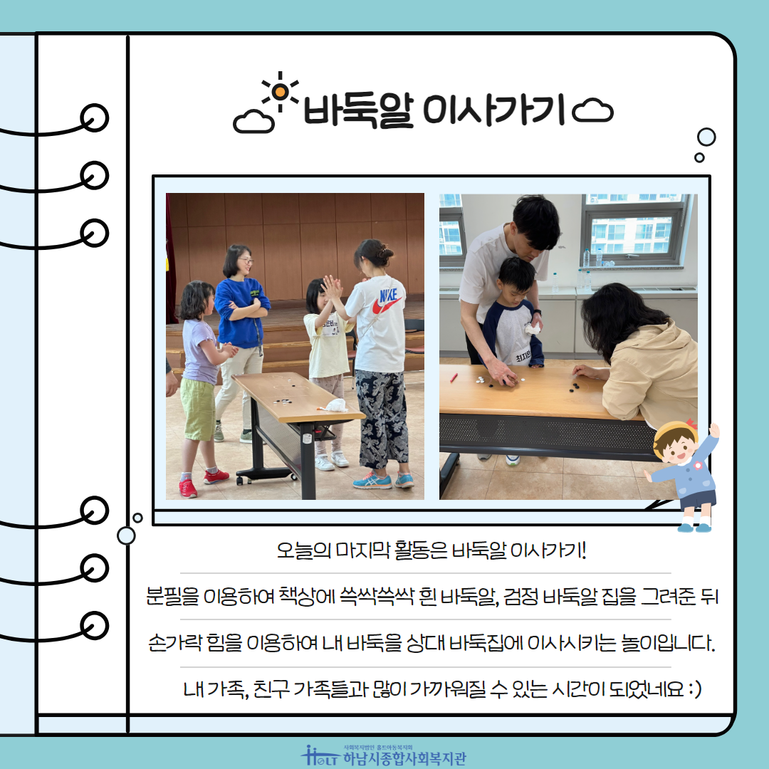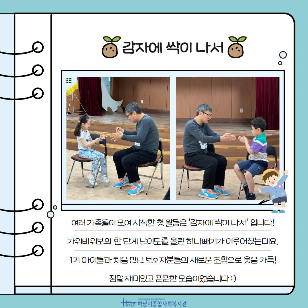 놀자! 하남에서! 2024 어린이날 대축제 2024-05-07 조회수 3,306 하남라이온스클럽 후원물품 전달 2024-05-03 조회수 2,570 케이워터기술(팔당권사업소)와 업무협약 체결! 2024-05-02 조회수 2,870 사람과 사람 사이를 잇다 ‘사이사이’ 홍보 및 지역사회 인식 캠페인 진행 2024-05-01 조회수 1,839 2024 노년의 소중하고 풍성한 만남 '노년소풍' 2회기 실시 2024-04-30 조회수 5,147 2024 하남먹거리 '식사는 하셨어요?' 사업실시 2024-04-26 조회수 3,568 오븐엔조이 지에라반 4월 제과제빵 후원 2024-04-23 조회수 1,700 가족문화체험 [영화보러가자] 쿵푸팬더4 관람 2024-04-23 조회수 3,614 [오늘은 노는 날! - 1기] 엄마아빠랑 노는 날 진행(2회기) 2024-04-23 조회수 2,907