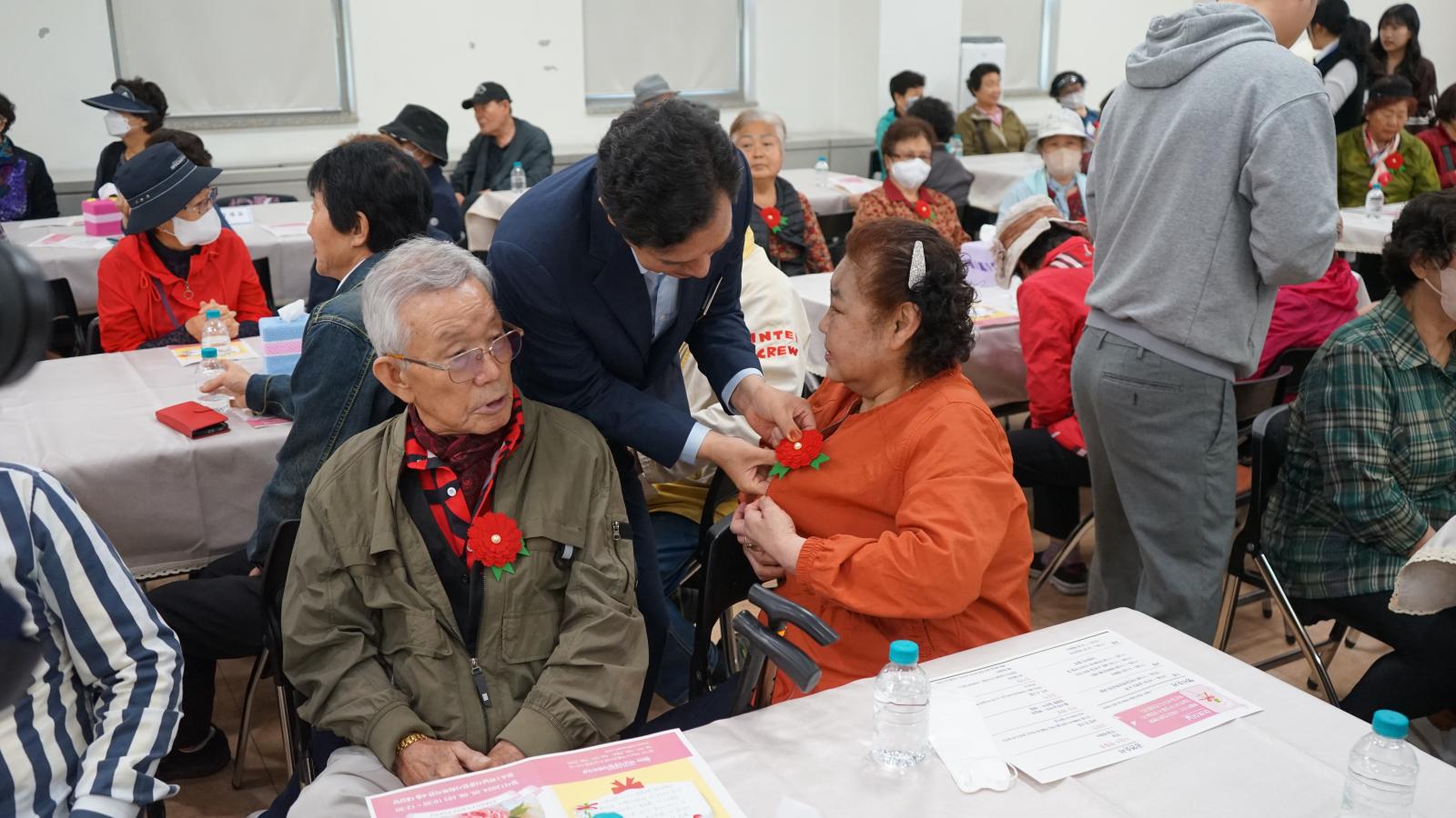 정성스럽게 만든 카네이션을 어르신들께 직접 달아드리는 시간을 가졌습니다.