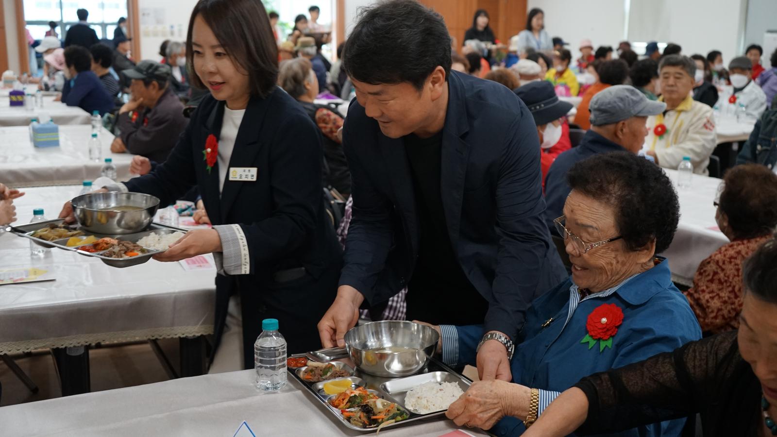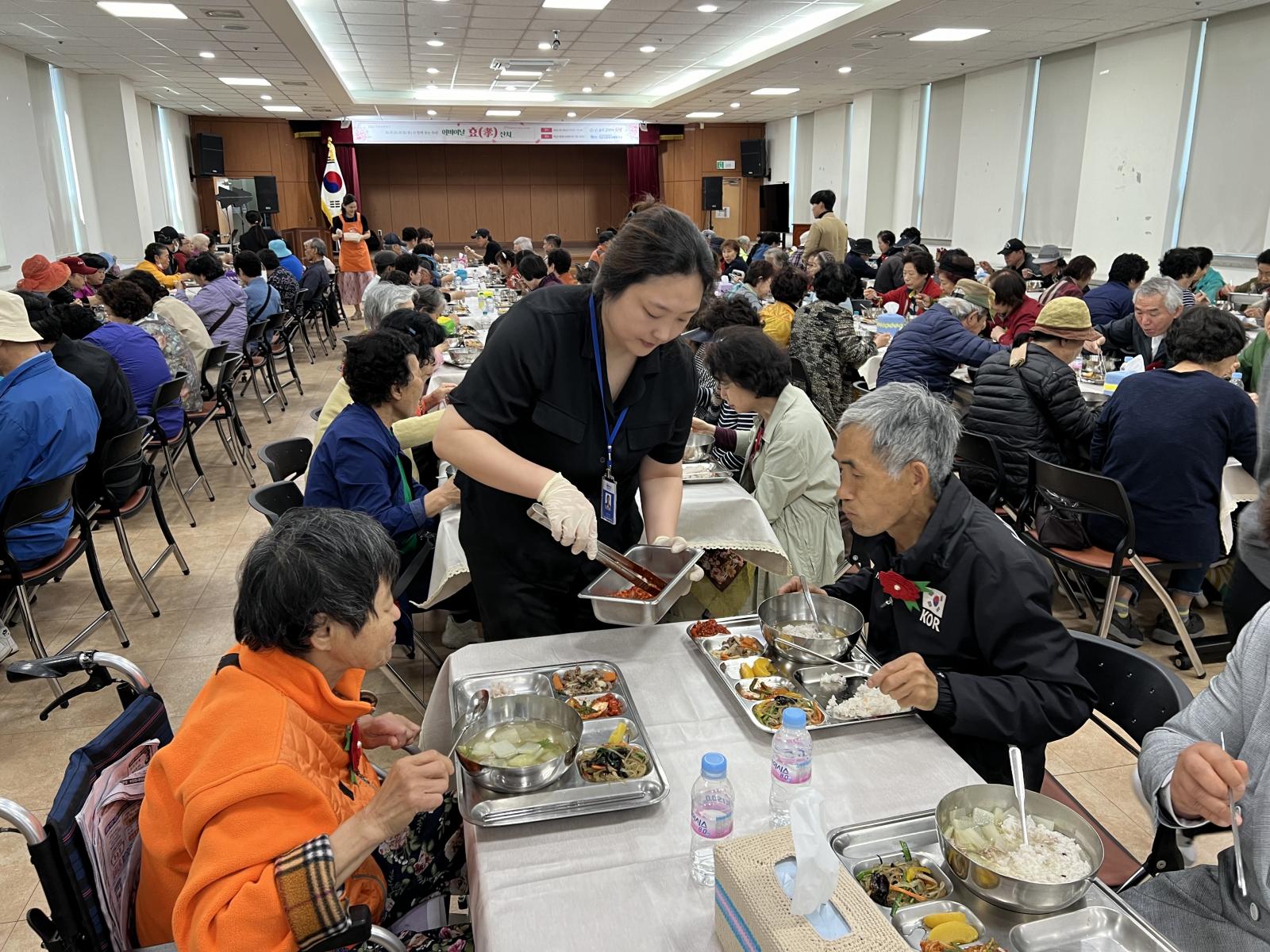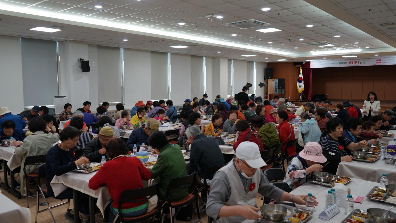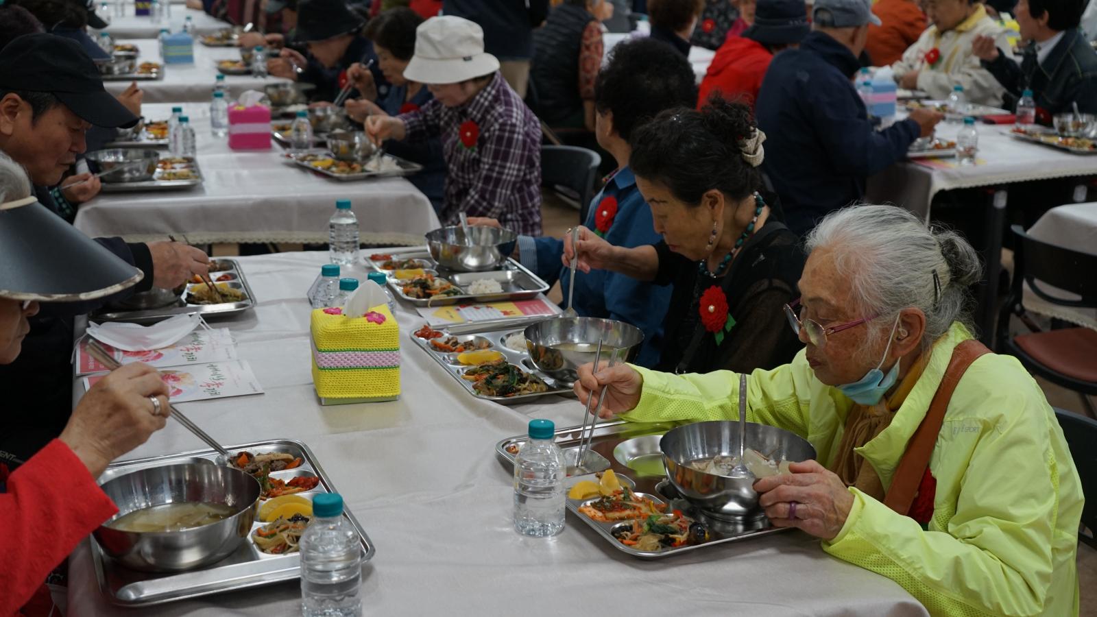 효 잔치를 마치며, 어르신들을 위한 점심식사가 마련되었습니다.