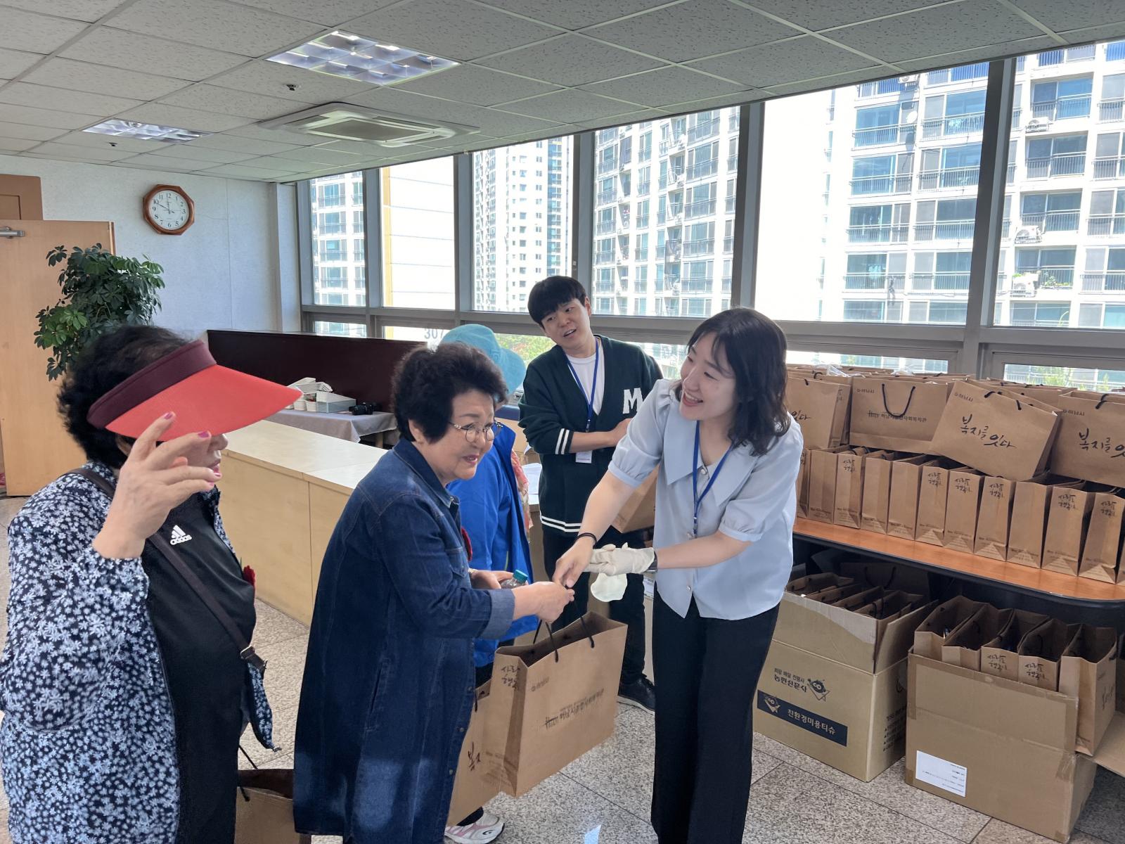 복지관에서 준비한 답례품 등을 전달해드렸습니다.