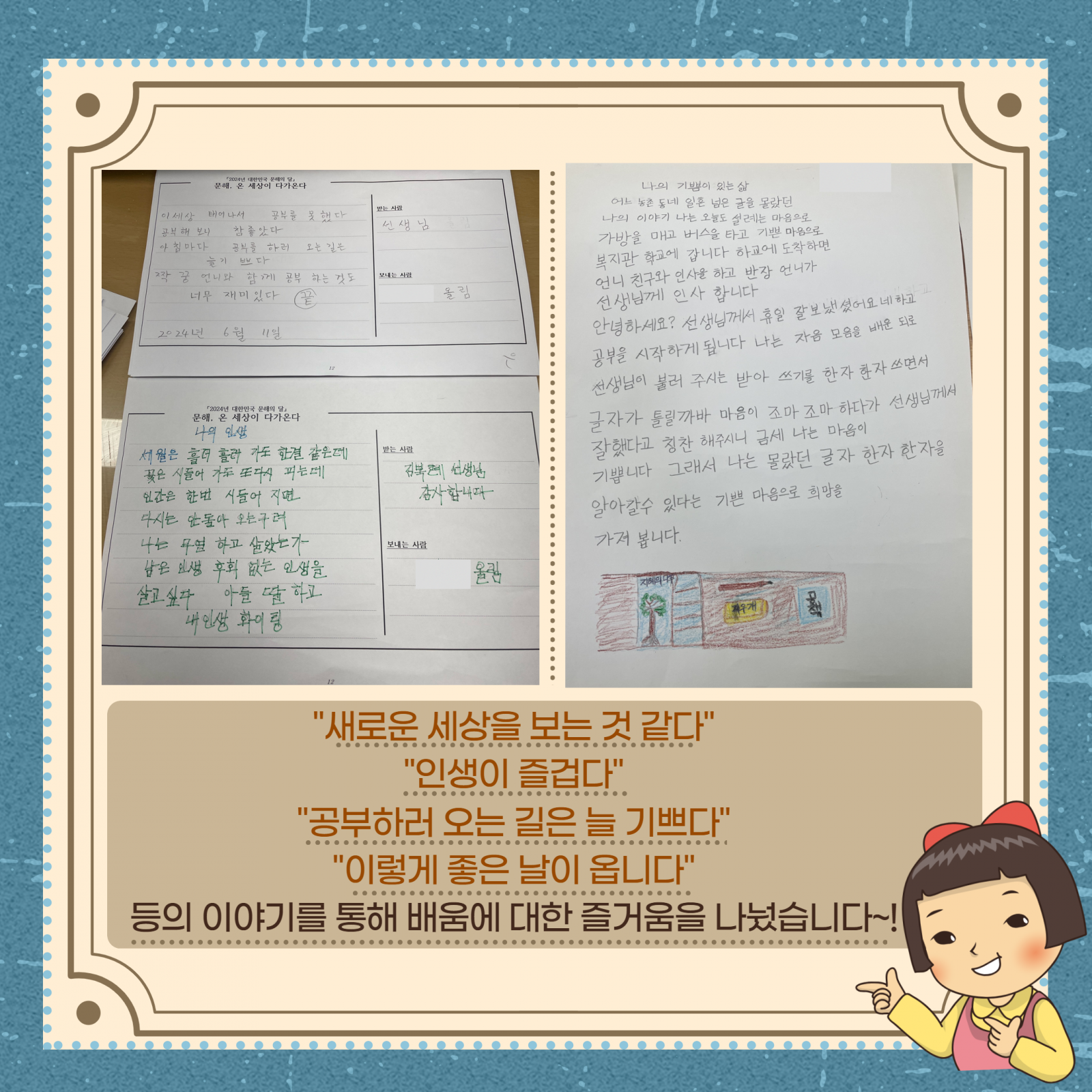 꿈나무나눔실천교실-나눔실천교육 3회기 2024-06-18 조회수 2,819 2024년 전국 성인문해교육 시화전 2024-06-13 조회수 3,011 아동청소년을 위한 KB핑크박스(KB국민은행+초록우산) 2024-06-12 조회수 2,542 제철과일 구독 프로젝트1(우양재단) 2024-06-12 조회수 2,516 2024 요리 체험 프로그램 요리쿡! 조리쿡! 2024-06-11 조회수 3,059 꿈나무나눔실천교실-나눔실천교육 2회기 2024-06-11 조회수 2,716 하남라이온스클럽 후원물품 전달 2024-06-07 조회수 2,696 사람과 사람 사이를 잇다 ‘사이사이’ 3차 양성교육 & 정기모임 2024-06-07 조회수 2,373 꿈나무나눔실천교실-나눔실천교육 실시 2024-06-05 조회수 2,515