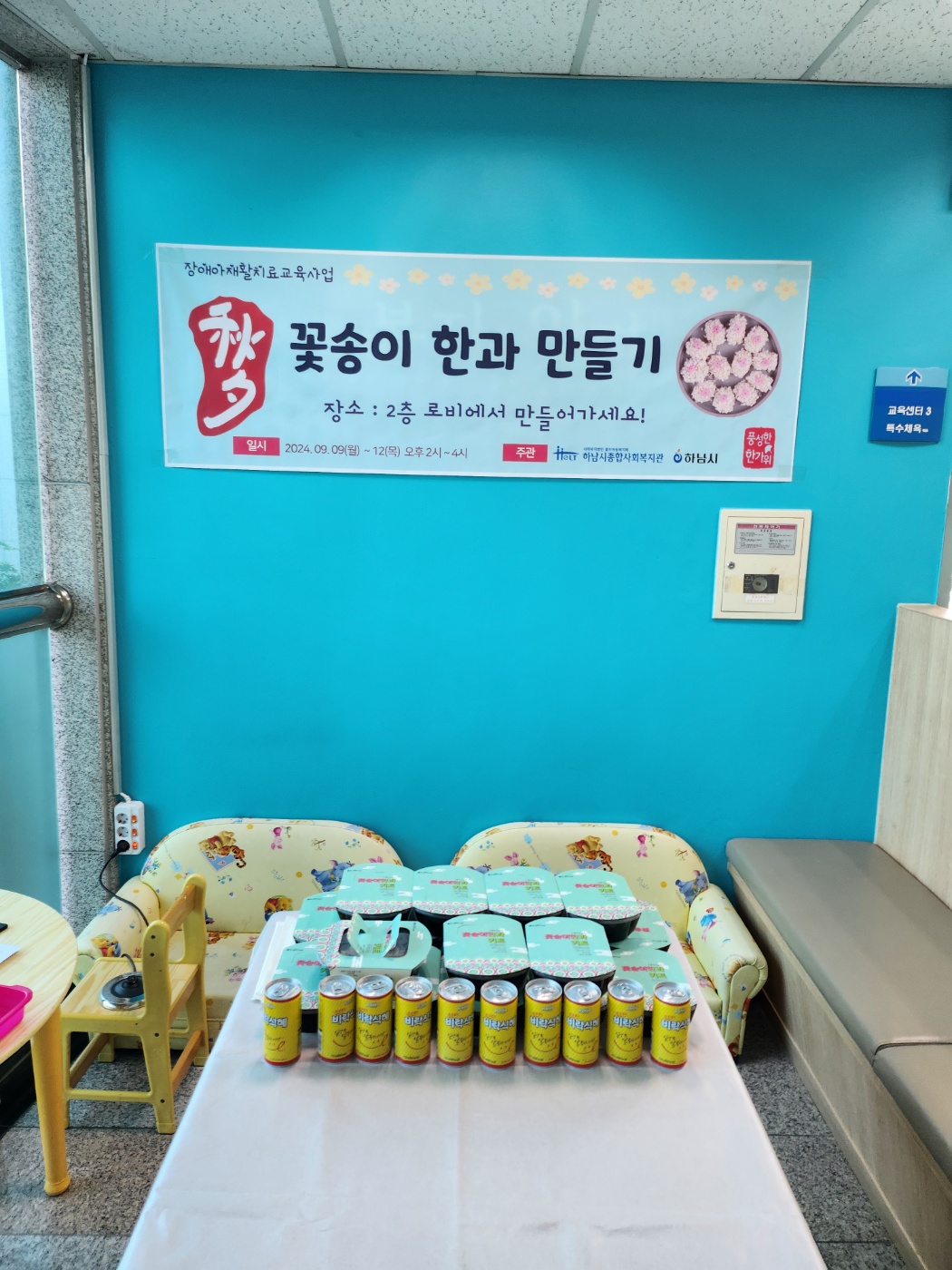2024 추석맞이 유과 만들기 작성일 : 2024.09.30 | 조회수 : 2370 안녕하세요, 하남시종합사회복지관입니다.24년 9월 9일부터 12일까지 4일동안 추석을 맞이하여 유과 만들기 행사를 진행하였습니다.2층 로비에서 직접 유과 만들기 체험을 진행하였으며, 체험 시간이 부족한 아동은 가정에서 만들 수 있게 키트를 제공하였습니다.추석을 맞이하여아동과 가족들이 함께 즐거운 명절이 되었길 바랍니다.
