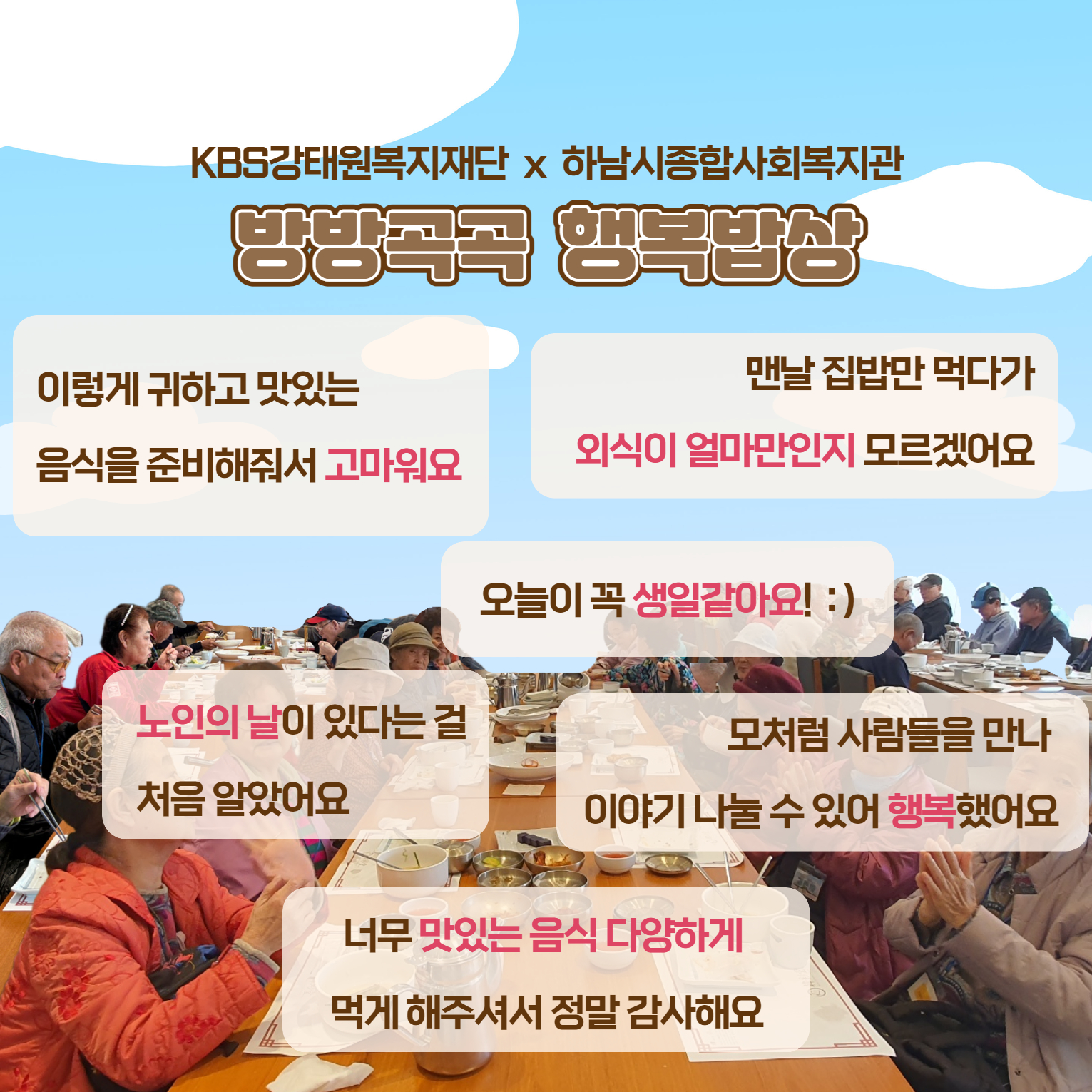 고(독사)스톱 프로젝트(스타필드하남, 하남시사회복지협의회) 2024-11-14 조회수 1,750 제철과일 구독 프로젝트 6(우양재단) 2024-11-11 조회수 1,901 어르신 외식지원사업 '방방곡곡 행복밥상' (KBS강태원복지재단) 2024-11-06 조회수 2,172 2024 꿈디자이너 보호자모임 5회기 실시 2024-11-06 조회수 1,629 1박 2일 가족 힐링캠프 실시 2024-11-05 조회수 1,825 꿈나무나눔실천교실-나눔증서만들기 2024-11-05 조회수 1,619 사람과 사람 사이를 잇다 ‘사이사이’ 네트워크 회의 실시(2회기) 2024-11-04 조회수 2,013 2024 아동권리 증진사업 '오늘은 노는 날! - 4기' 10월 소식 2024-11-01 조회수 1,797 사람과 사람 사이를 잇다 ‘사이사이’ 정서지원 프로그램(가을 나들이) 2024-11-01 조회수 1,425