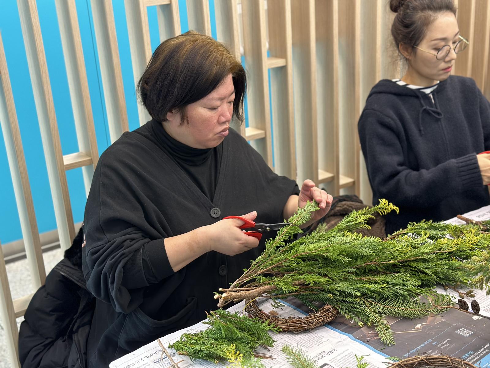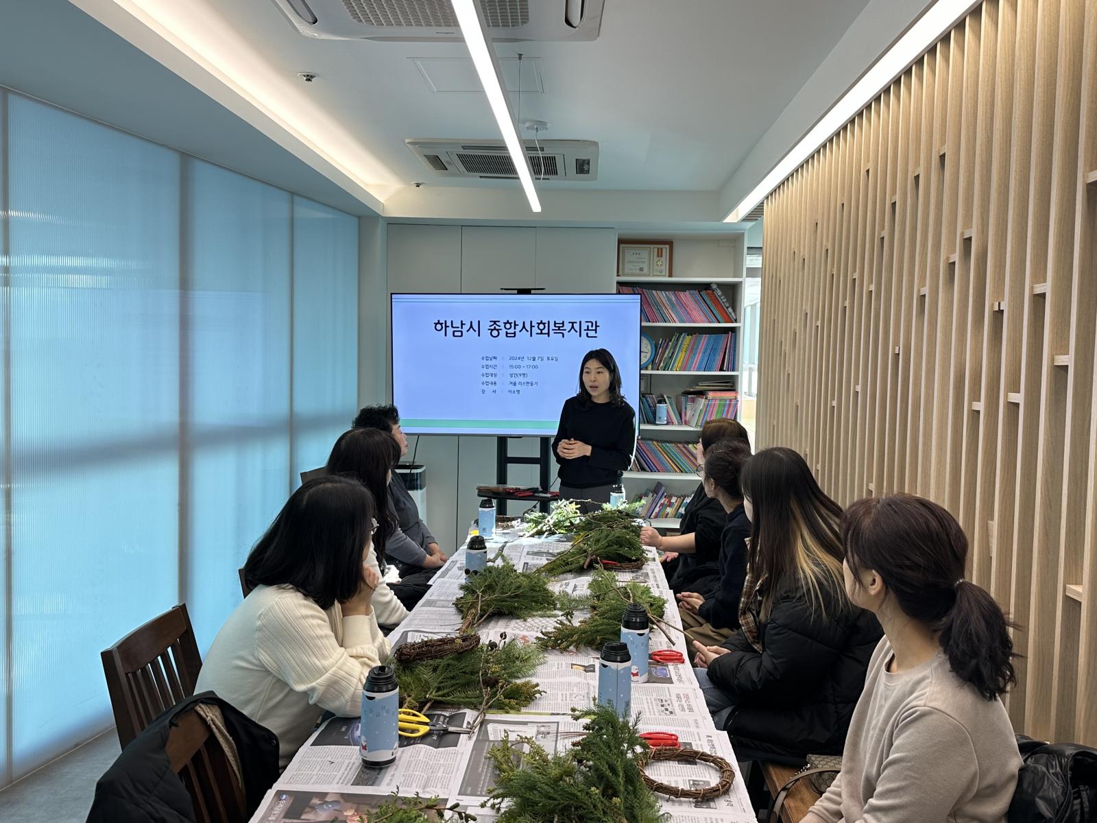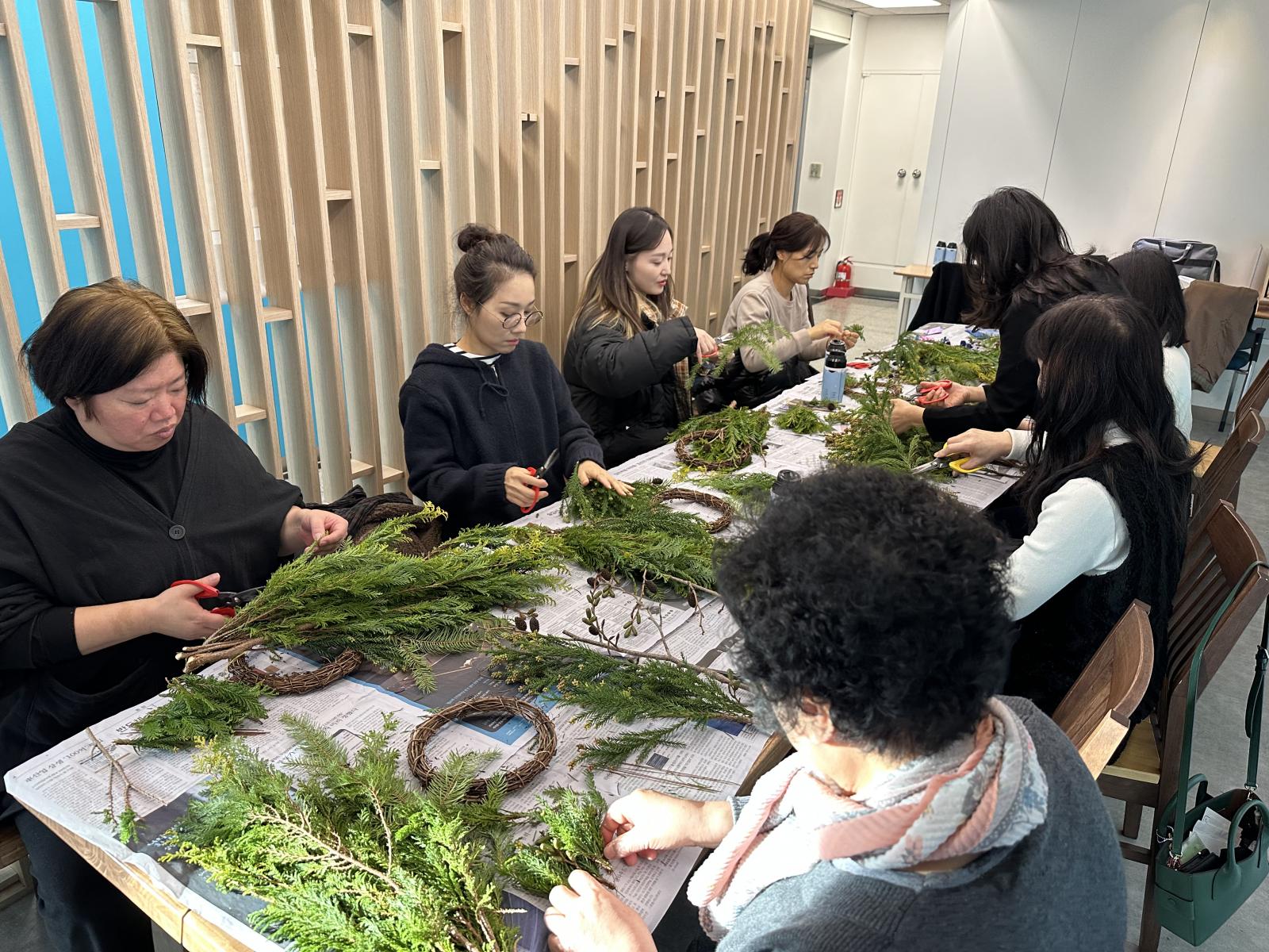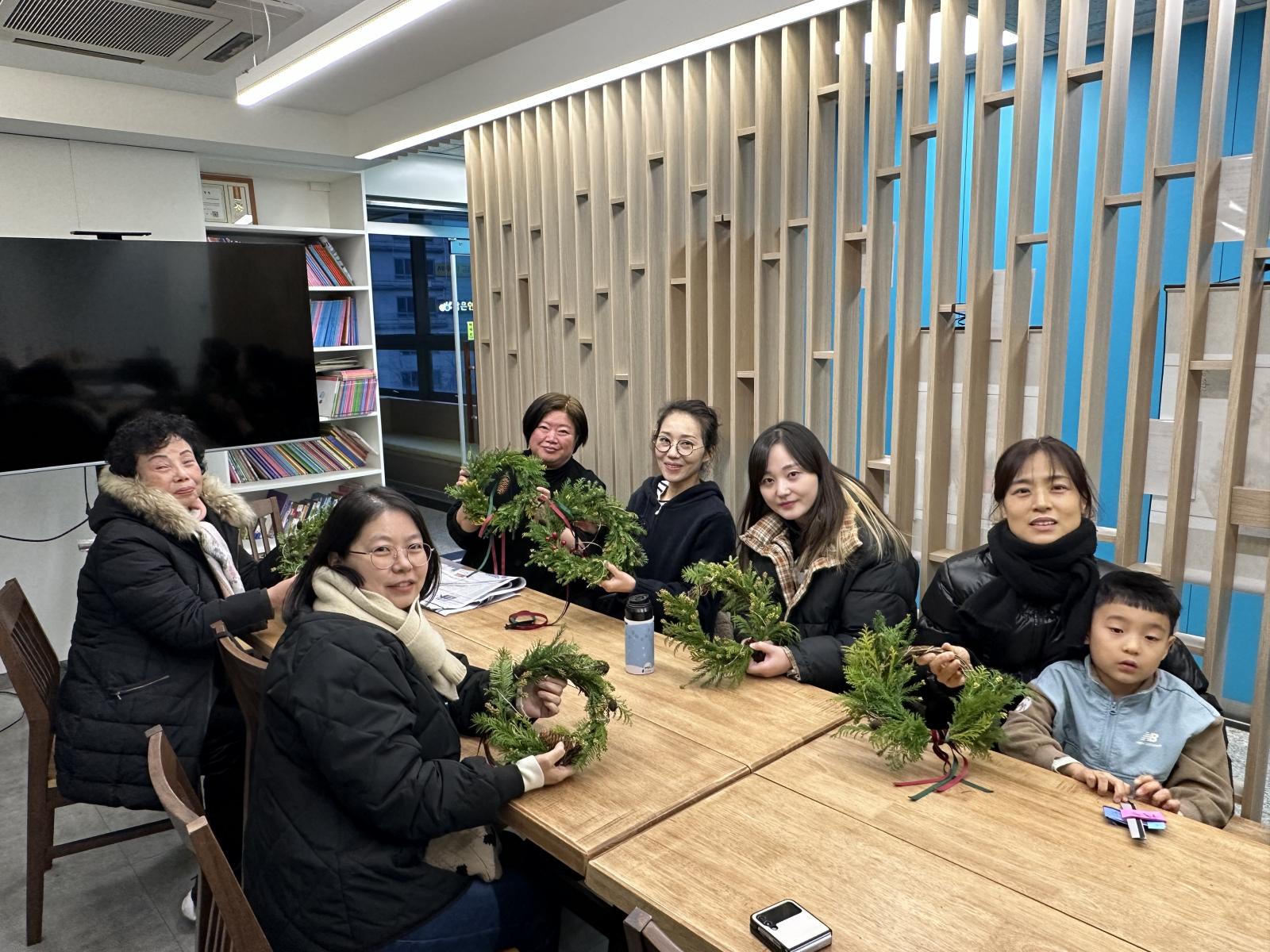 생화 크리스마스 리스 만들기 활동으로 진행되었습니다.