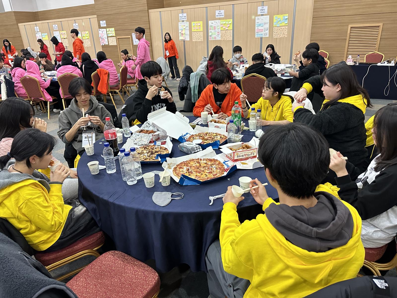 맛있는 음식을 함께 먹고, 조별로 만든 숏츠 영상을 함께 관람하며