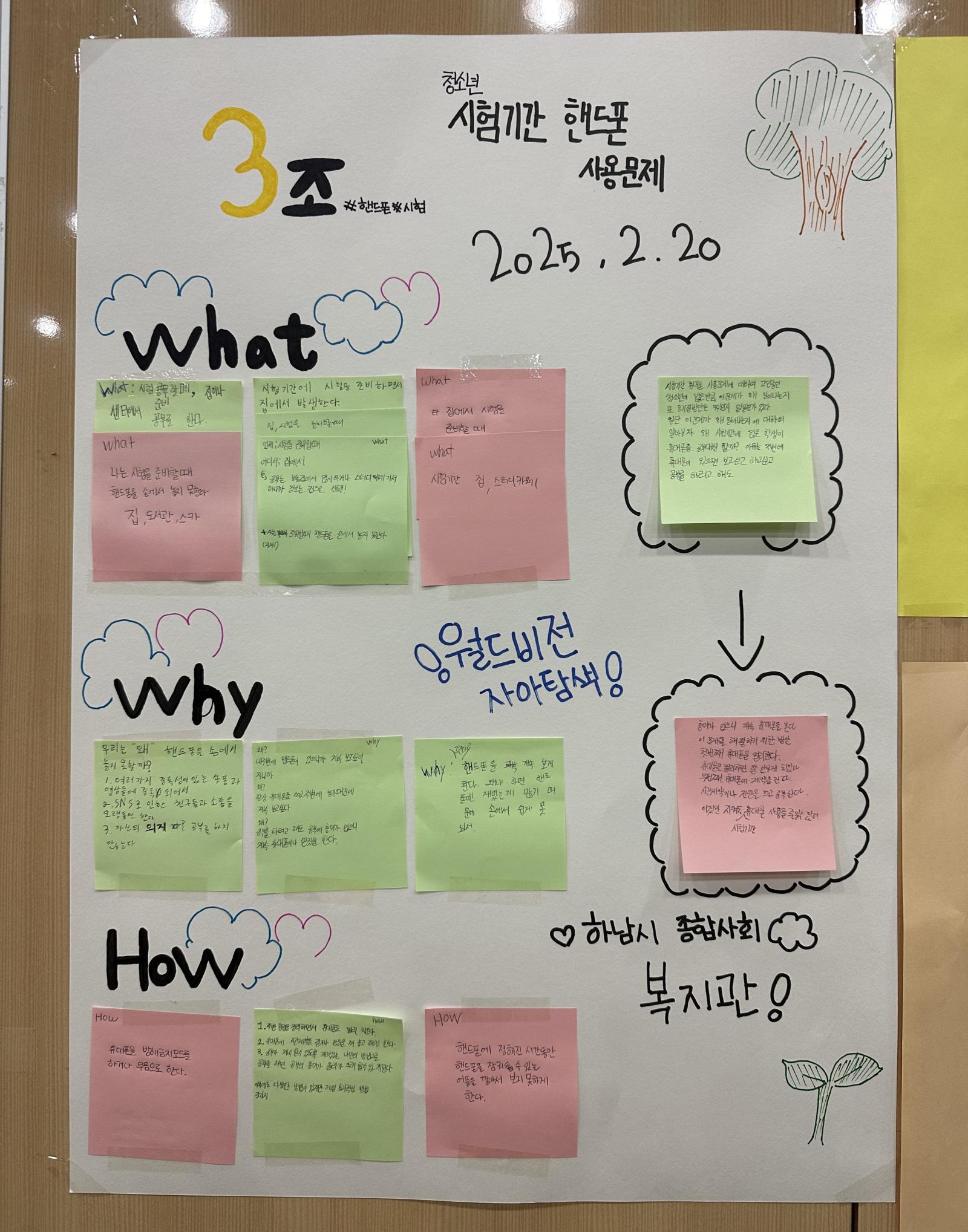 우리 조는 ‘청소년 시험기간 스마트폰 사용문제’를 주제로 문제를 정의하고,