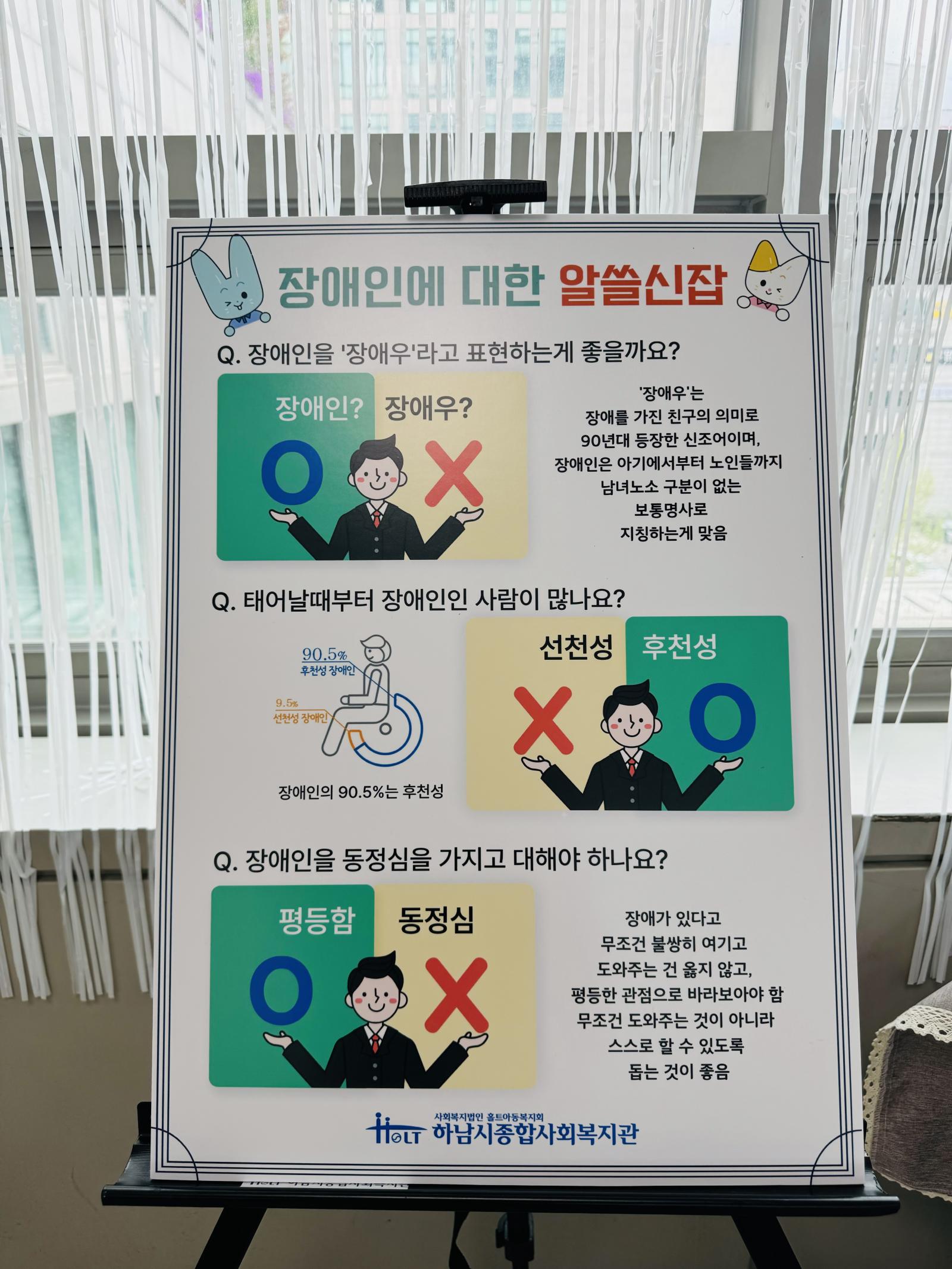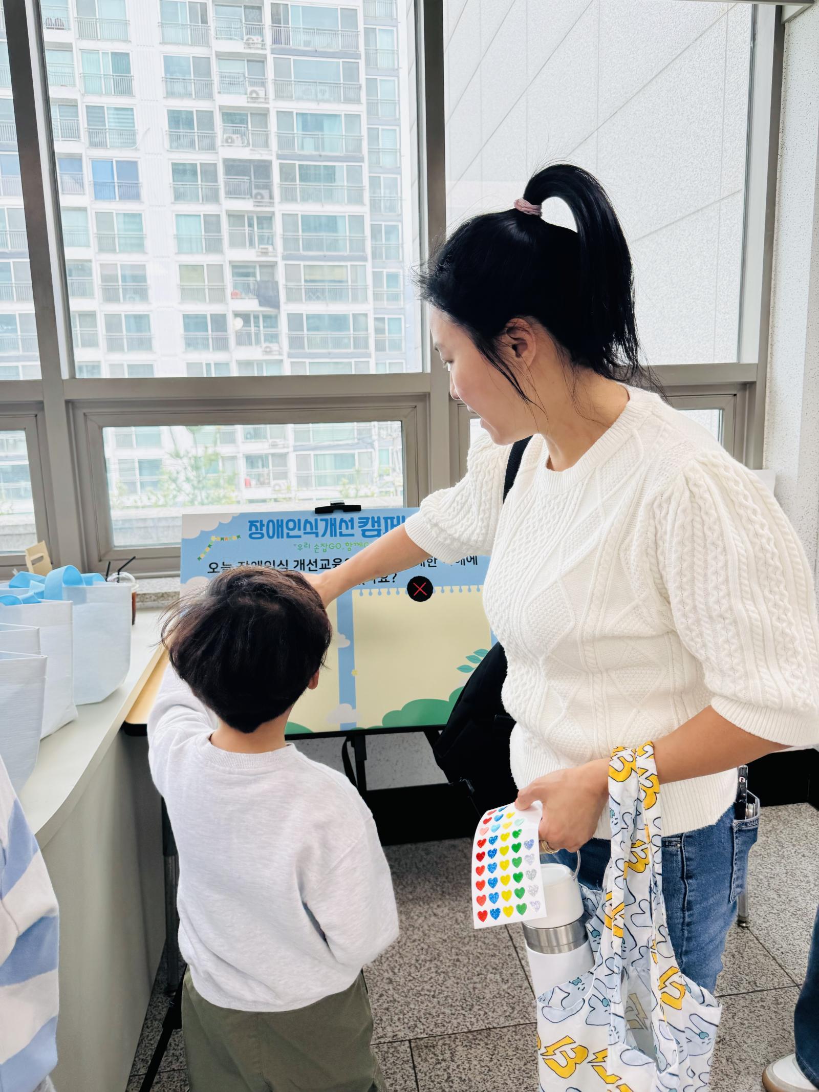 장애인식 개선교육이 장애인에 대한 이해에 도움이 되었나요? 라는 O, X 질문에 100% O라고 하셨습니다.