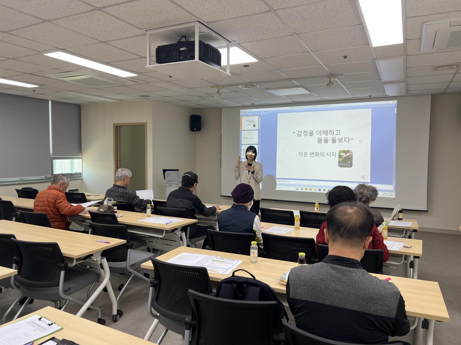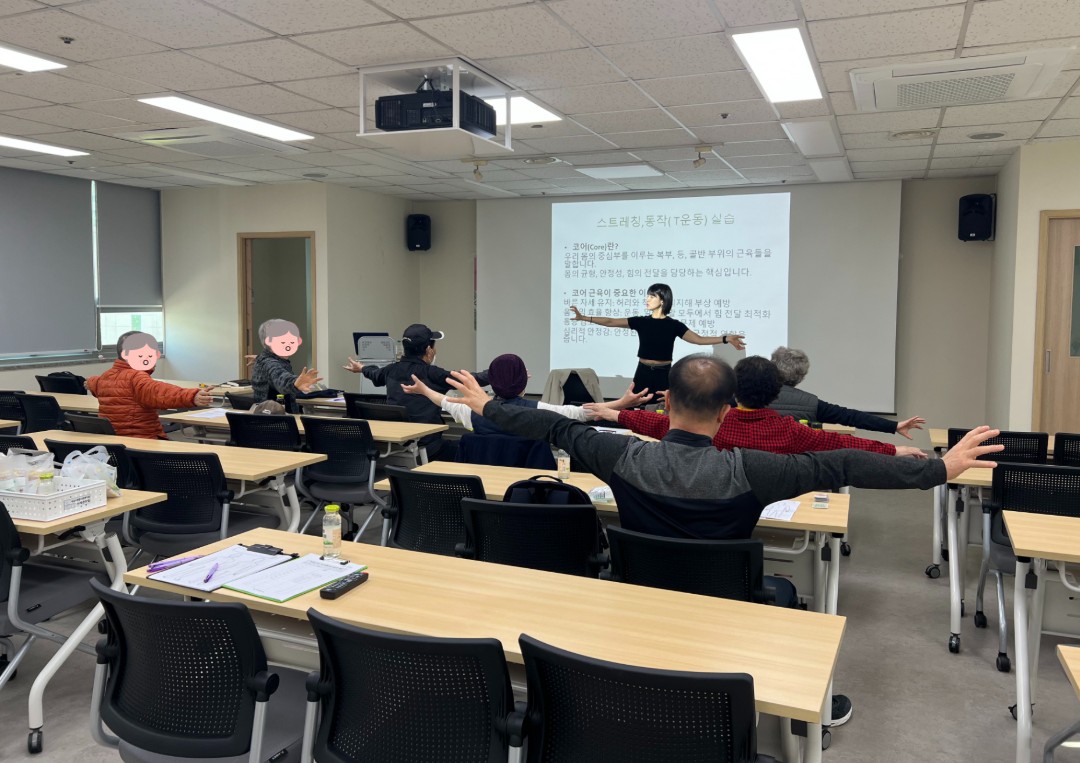 2차시에는 3-3-7 박수법, 4-7-8 호흡법, 복식호흡, T스트레칭 실습 등을 통해