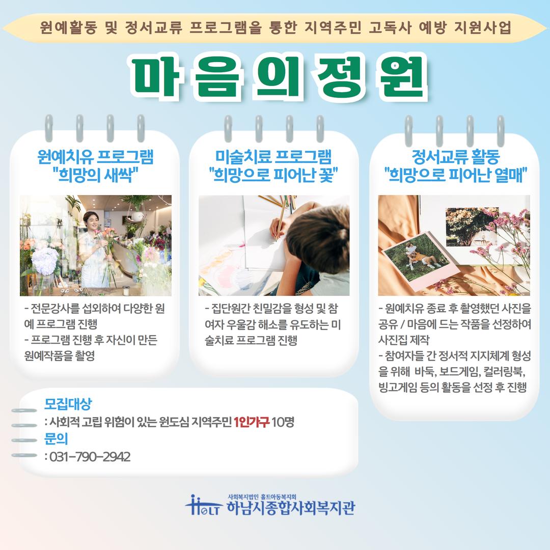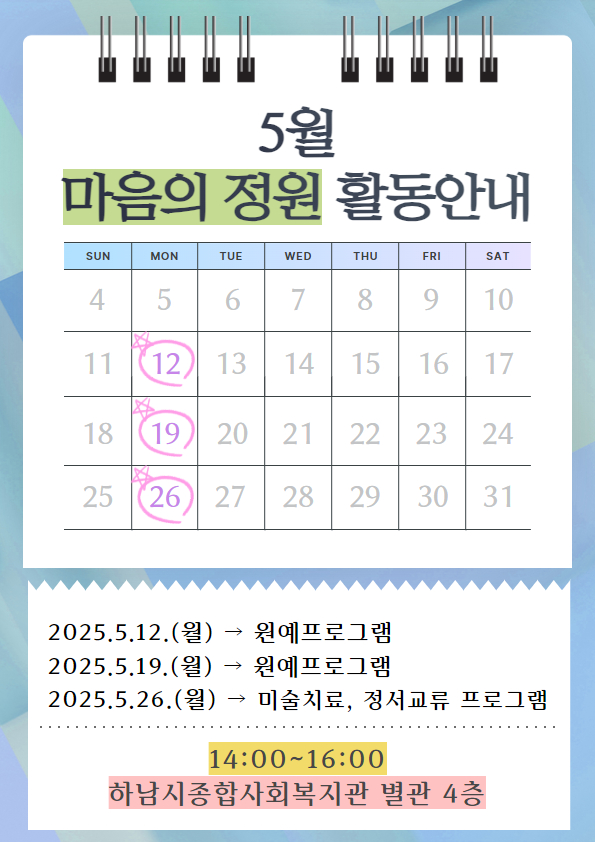 5월부터 본격적으로 진행되는 마음의 정원 프로그램 많은 관심부탁드립니다.