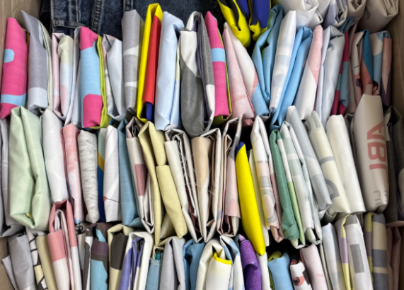 이번 달에는 폐현수막 장바구니와 자투리 천 도시락 가방 만들기를 동시에 작업해보았습니다.