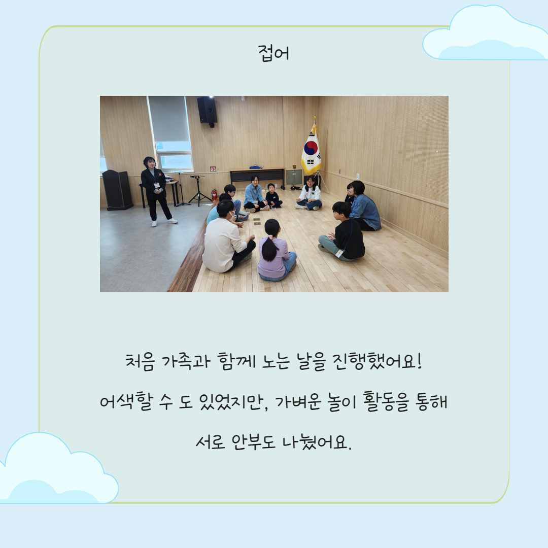 2025년 어버이날 맞이 재가노인 식사배달 진행 2025-05-12 조회수 974 2025 얘들아 놀자, 어린이날 대축제 진행 2025-05-09 조회수 1,079 2025년 하남먹거리 ‘식사는 하셨어요?’ 사업실시 2025-04-30 조회수 791 2025년 '오늘은 노는 날!'- 가족과 함께 노는 날 1회기 2025-04-30 조회수 1,024 "마음의 정원" 오리엔테이션 - 희망의 씨앗 진행 2025-04-29 조회수 1,258 2025 장애인의 날 행사 "우리 손잡GO, 함께GO" 2025-04-29 조회수 1,169 개관 20주년, 기념 '으쓱(ESG) 페스티벌' 2025-04-28 조회수 1,592 "마음의 정원" 주민사업설명회 - 희망의 홀씨 개최 2025-04-25 조회수 1,122 2025년 4월 행복나눔조리봉사단 활동 진행 2025-04-23 조회수 1,014