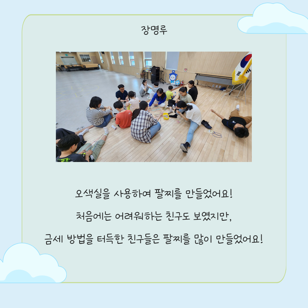 2025 장애인평생학습도시 ' 힐링공방 - 향기테라피-' 2025-06-05 조회수 1,217 2025년 '오늘은 노는 날!' - 가족과 함께 노는 날 2회기 2025-06-05 조회수 1,348 사례관리 팀스터디 2회기 실시 2025-06-04 조회수 1,625 2025년 내가 여는 스마트세상 1:1 멘토링 상반기 활동 2025-06-02 조회수 1,178 2025년 폐현수막 새활용 프로젝트 <보따리 봉사단> 5월 활동 2025-06-02 조회수 1,205 가정의 달 생필품 지원 2025-05-30 조회수 902 2025년 사람과 사람 사이를 잇다 ‘사이사이’ 이웃사이 지킴이 정기모임 2025-05-30 조회수 960 2025년 5월 행복나눔조리봉사단 활동 진행(하남먹거리 식사는 하셨어요? 2025-05-29 조회수 1,152 '마음의 정원' 미술치료&정서교류 프로그램 1회기 실시 2025-05-29 조회수 1,164