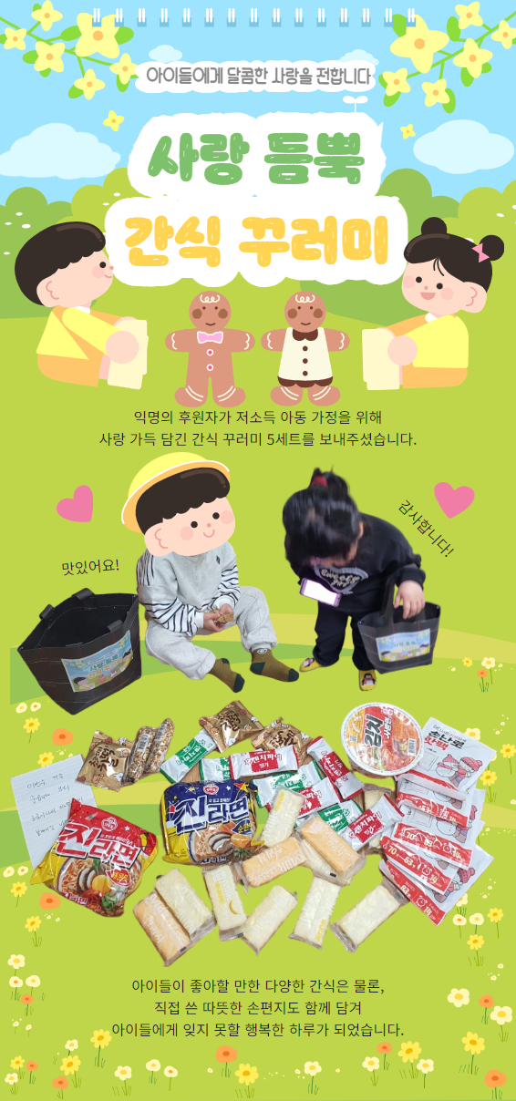 시립꿈이든어린이집, 하남시종합사회복지관에 후원금 전달 2025-03-28 조회수 1,344 2025년 내가 여는 스마트세상 결연식 및 오리엔테이션 진행 2025-03-21 조회수 1,668 2025 사람과 사람 사이를 잇다 ‘사이사이’ 이웃사이 지킴이 OT 진행 2025-03-21 조회수 1,225 부모 마음 산책 프로그램 2025-03-20 조회수 1,364 사랑 듬뿍 간식 꾸러미 2025-03-19 조회수 1,011 2025 꿈디자이너 비전원정대 1회기 실시 2025-03-10 조회수 1,780 2025년 1차 사례관리 외부자문 실시 2025-03-07 조회수 1,451 2025 꿈디자이너 자아탐색캠프 참석 2025-03-07 조회수 1,356 2025년 동계방학 사회복지현장실습 진행 2025-02-21 조회수 1,521