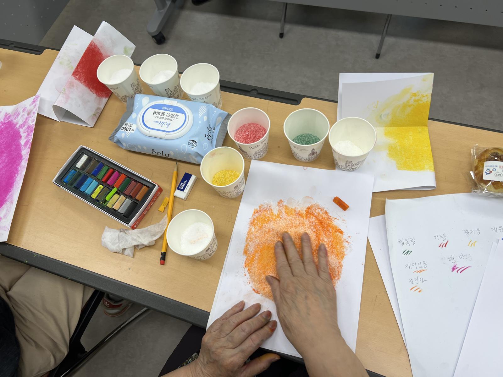 파스텔을 활용해 각양각색의 감정색소금을 만들어냈습니다!