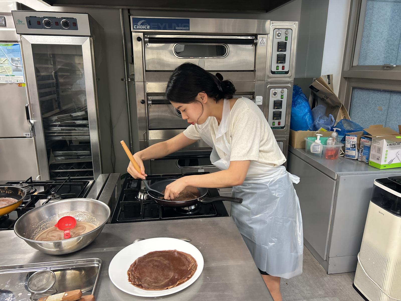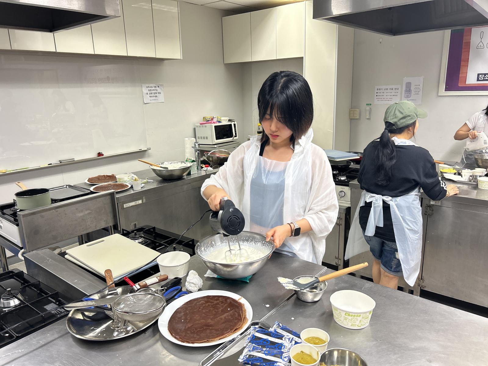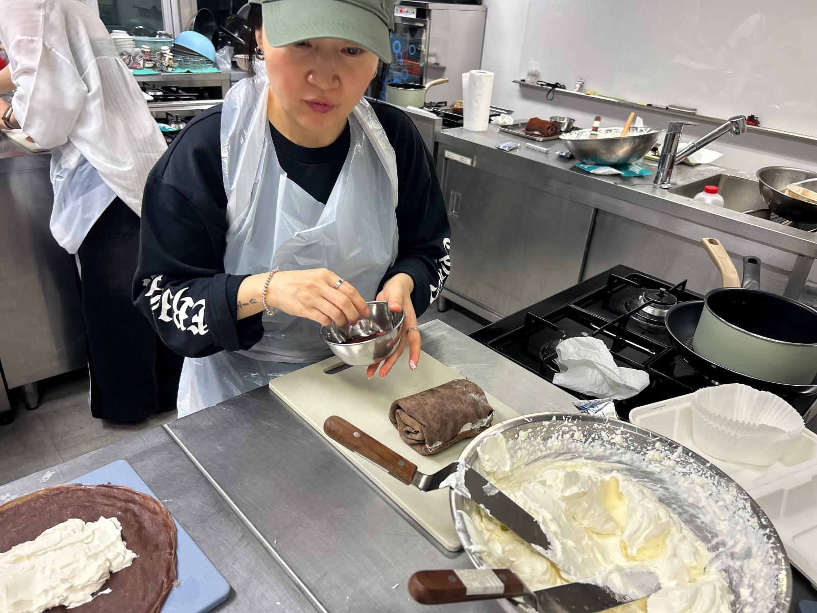 강사님의 강의에 따라 열심히 만들다 보니 수건케이크가 맛있게 완성되었습니다!