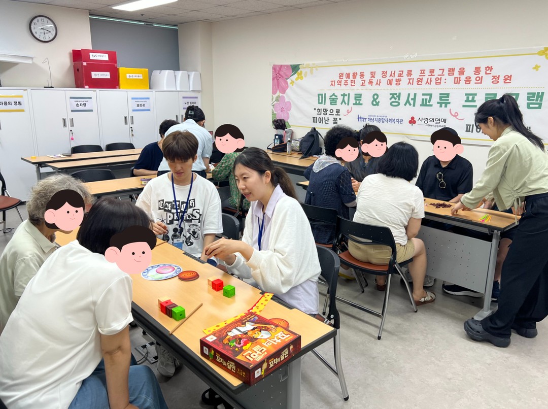 참여자들이 미술치료 활동을 하며